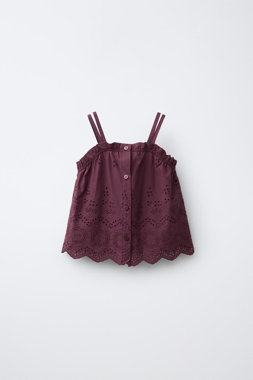 ZARA ТОП С ВЫШИВКОЙ ШИФФЛИ, ПУРПУРНЫЙ