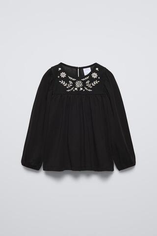 ZARA ТОП С ВЫШИВКОЙ В РОМАНТИЧЕСКОМ СТИЛЕ, ЧЕРНЫЙ