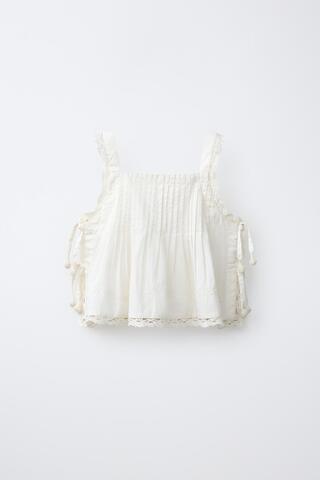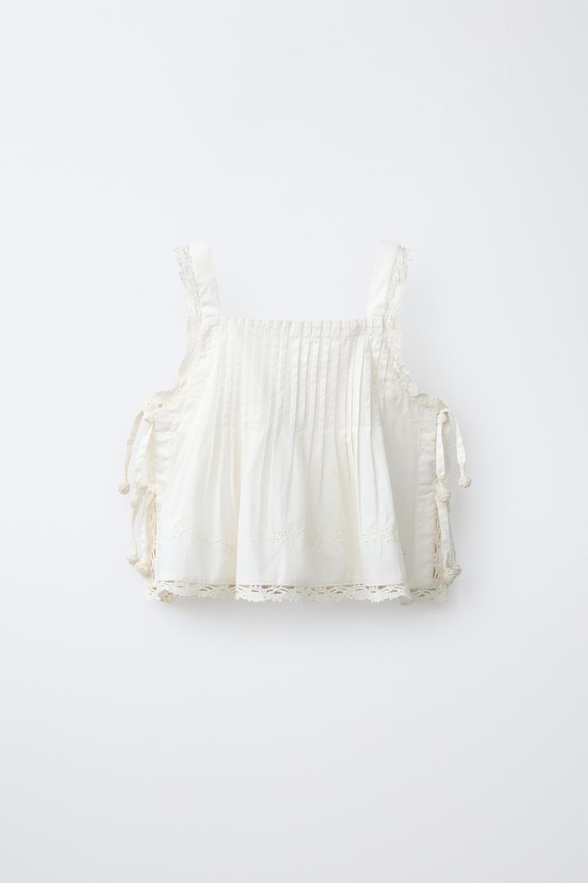 ZARA ТОП С ВЫШИВКОЙ, ЖЕЛТОВАТО-БЕЛЫЙ