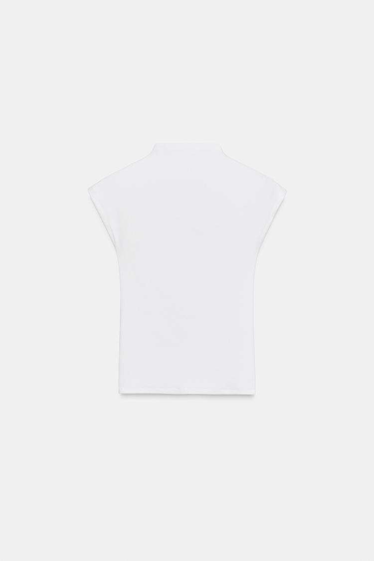 ZARA ТОП С ВЫСОКИМ ВОРОТНИКОМ, БЕЛЫЙ