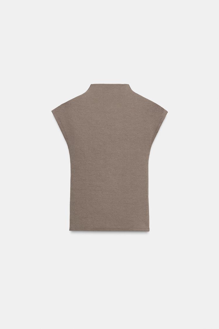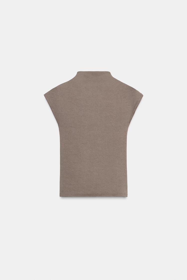 ZARA ТОП С ВЫСОКИМ ВОРОТНИКОМ, КОРИЧНЕВЫЙ