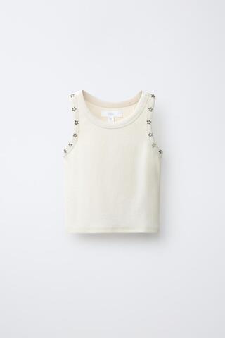 ZARA ТОП С ЗАКЛЕПКАМИ, БЕЖЕВЫЙ