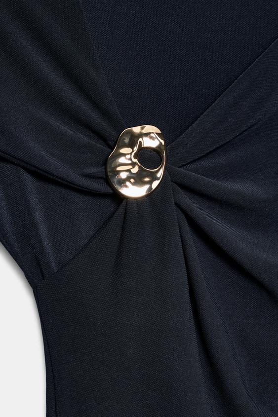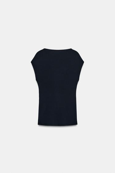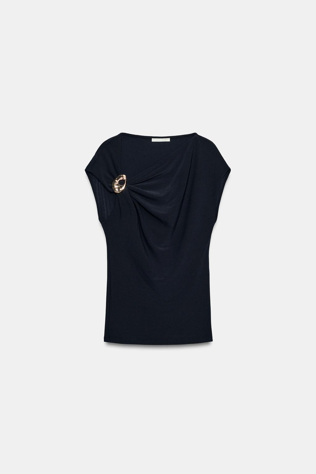 ZARA ТОП СО СБОРКАМИ И ФУРНИТУРОЙ, МОРСКОЙ СИНИЙ