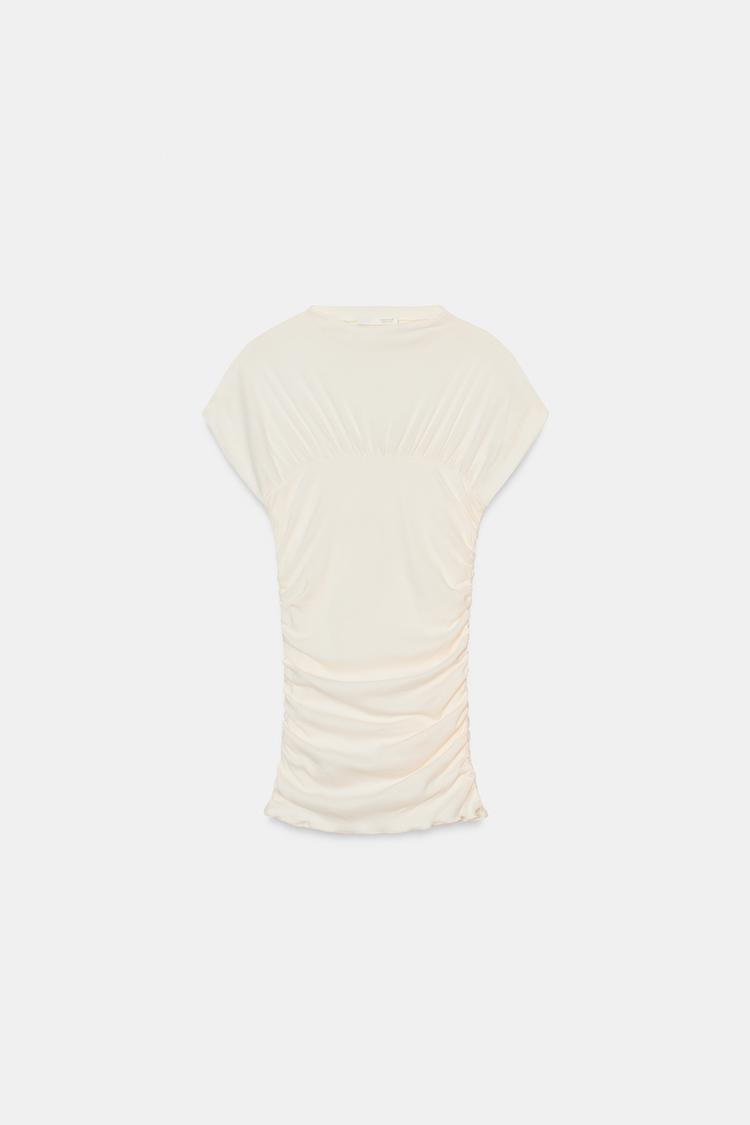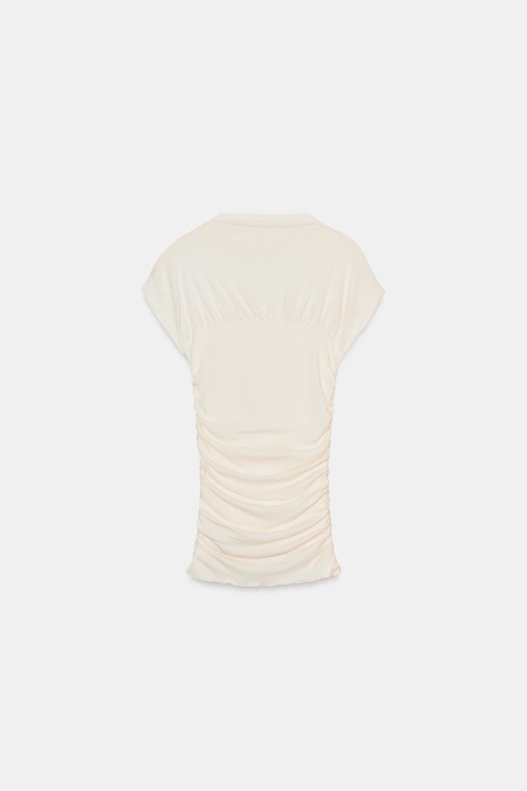 ZARA ТОП СО СБОРКАМИ, ЖЕЛТОВАТО-БЕЛЫЙ