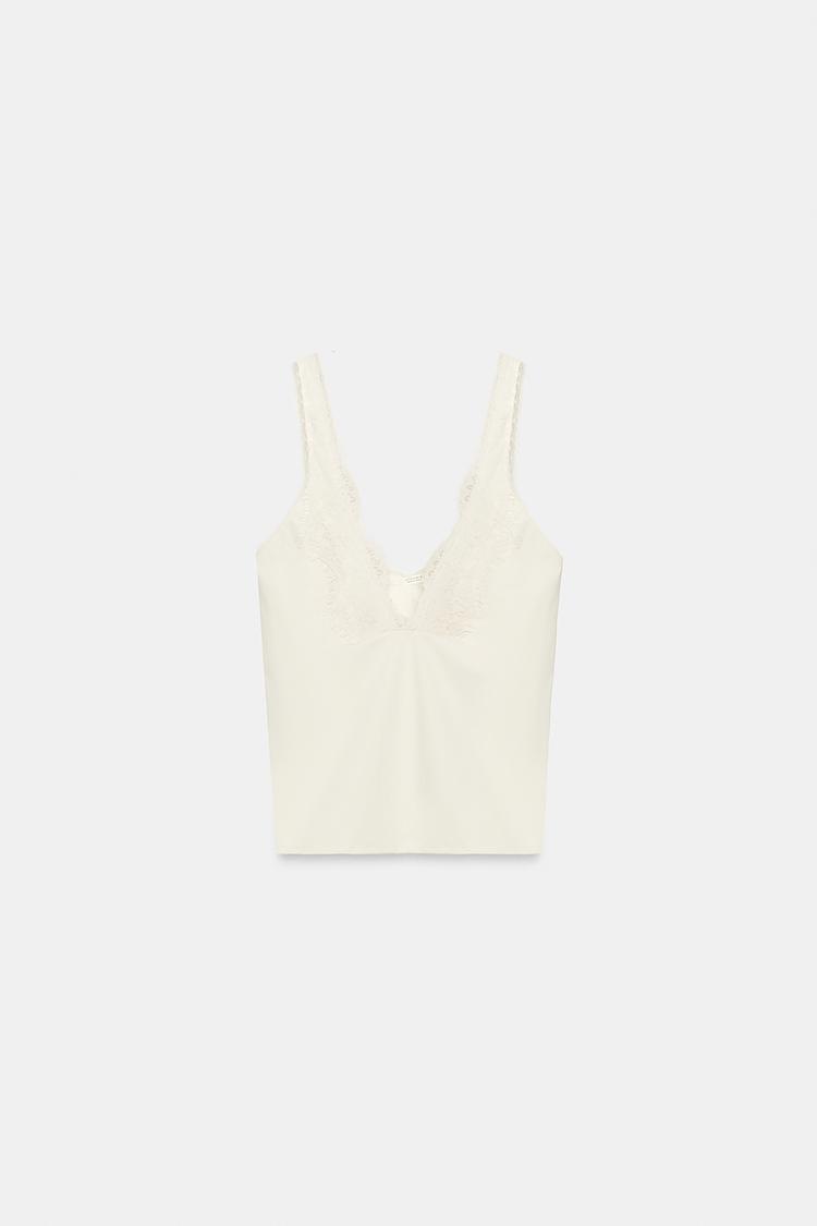 ZARA ТОП В БЕЛЬЕВОМ СТИЛЕ, ЭКРЮ