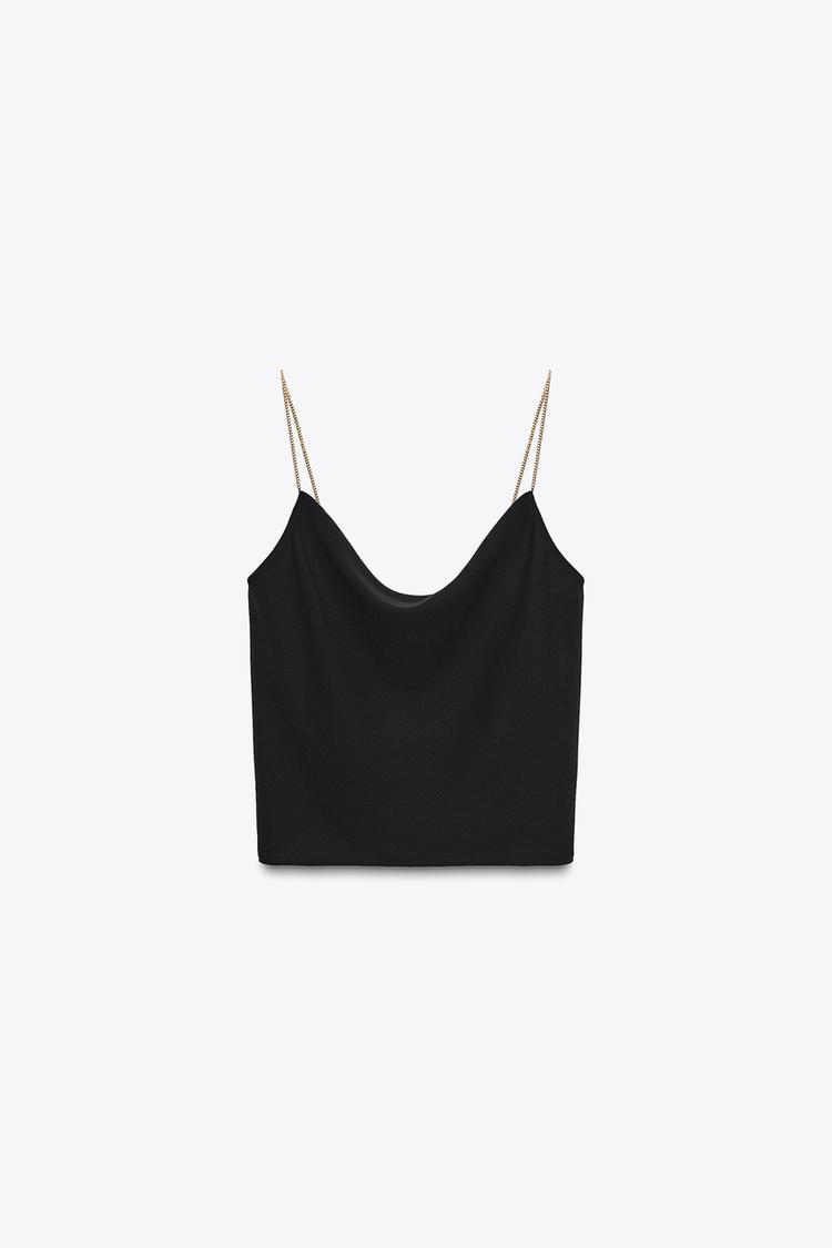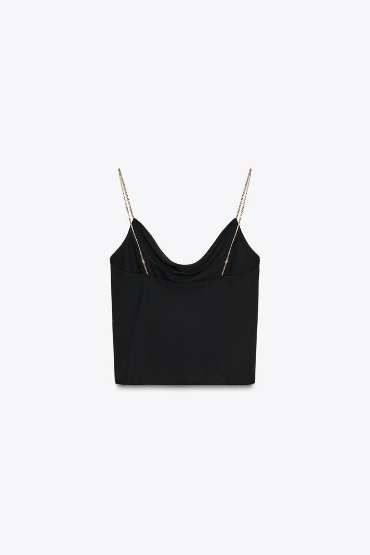 ZARA ТОП В БЕЛЬЕВОМ СТИЛЕ С БРЕТЕЛЬКАМИ-ЦЕПОЧКАМИ, ЧЕРНЫЙ