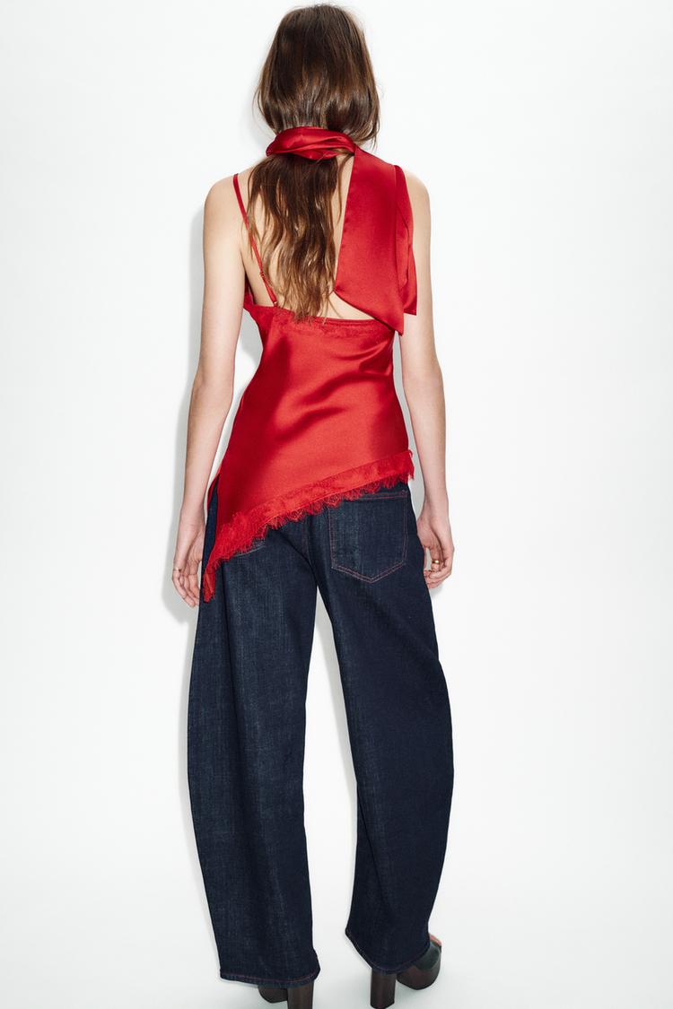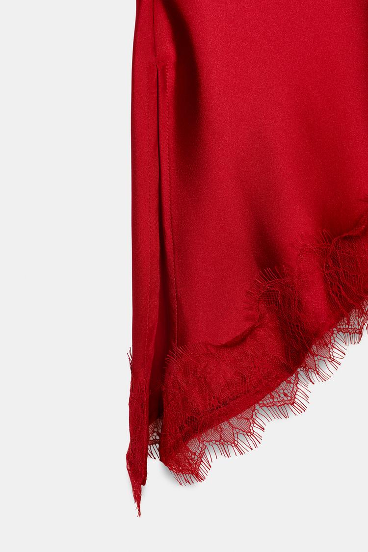 ZARA ТОП В БЕЛЬЕВОМ СТИЛЕ С КОМБИНИРОВАННЫМ КРУЖЕВОМ, КРАСНЫЙ