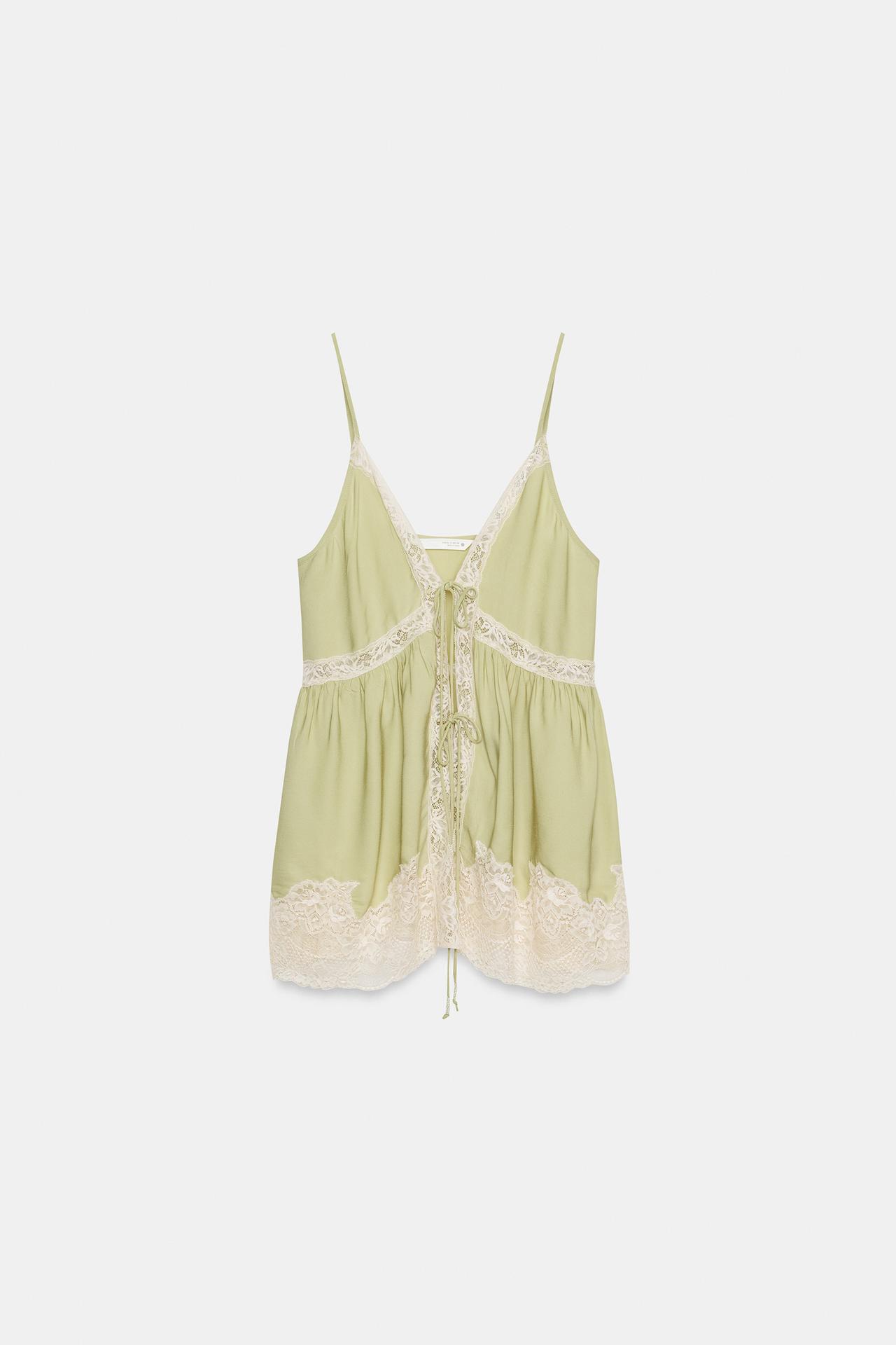 ZARA ТОП В БЕЛЬЕВОМ СТИЛЕ С КРУЖЕВОМ — ZW COLLECTION, ФИСТАШКОВЫЙ