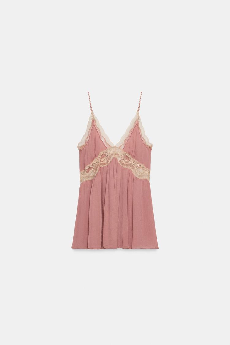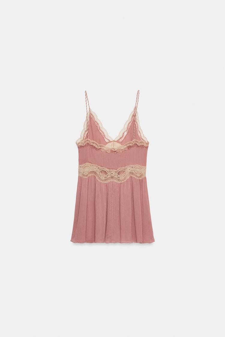 ZARA ТОП В БЕЛЬЕВОМ СТИЛЕ С КРУЖЕВОМ — ZW COLLECTION, РОЗОВЫЙ