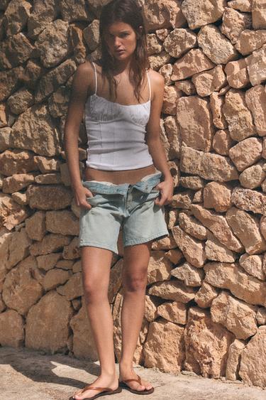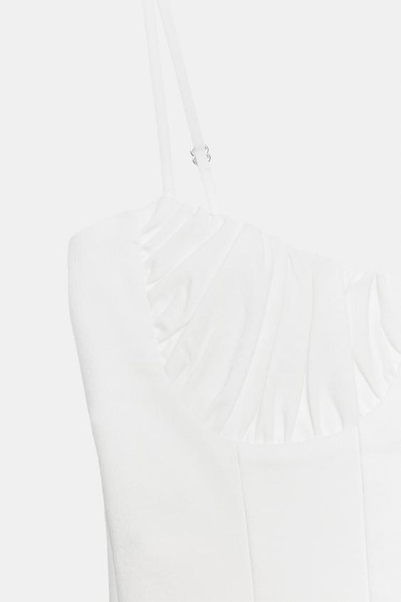 ZARA ТОП В БЕЛЬЕВОМ СТИЛЕ СО СБОРКАМИ, БЕЛЫЙ