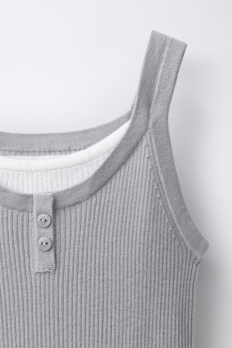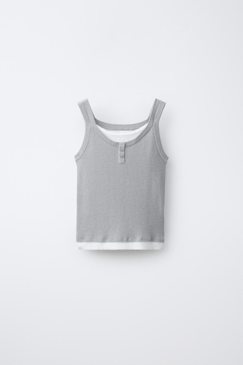 ZARA ТОП В ДВОЙНОЙ РУБЧИК, СЕРЫЙ