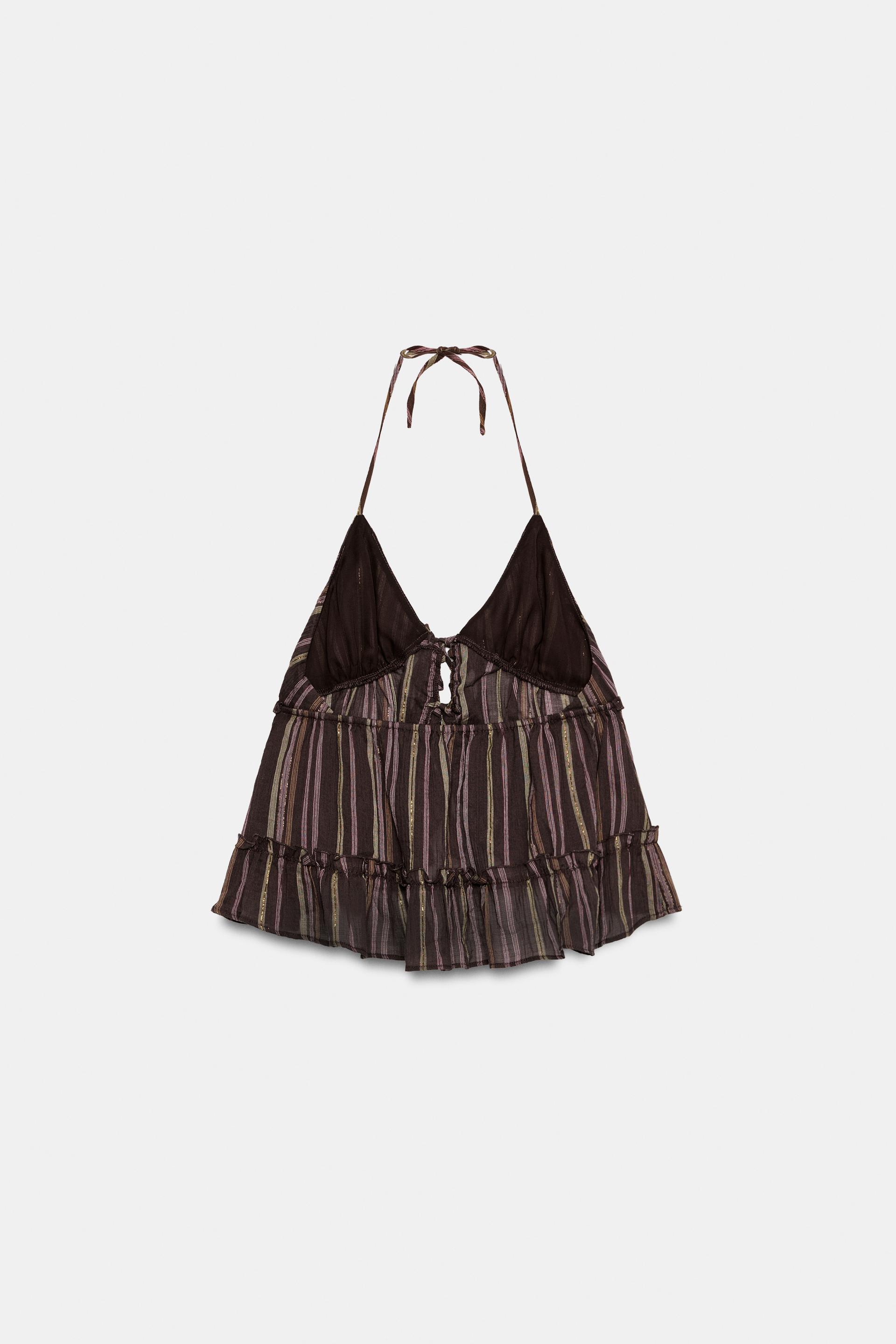 ZARA ТОП В ПОЛОСКУ С БЛЕСТЯЩЕЙ НИТЬЮ, КОРИЧНЕВЫЙ