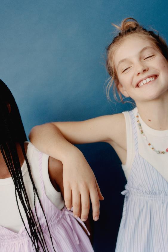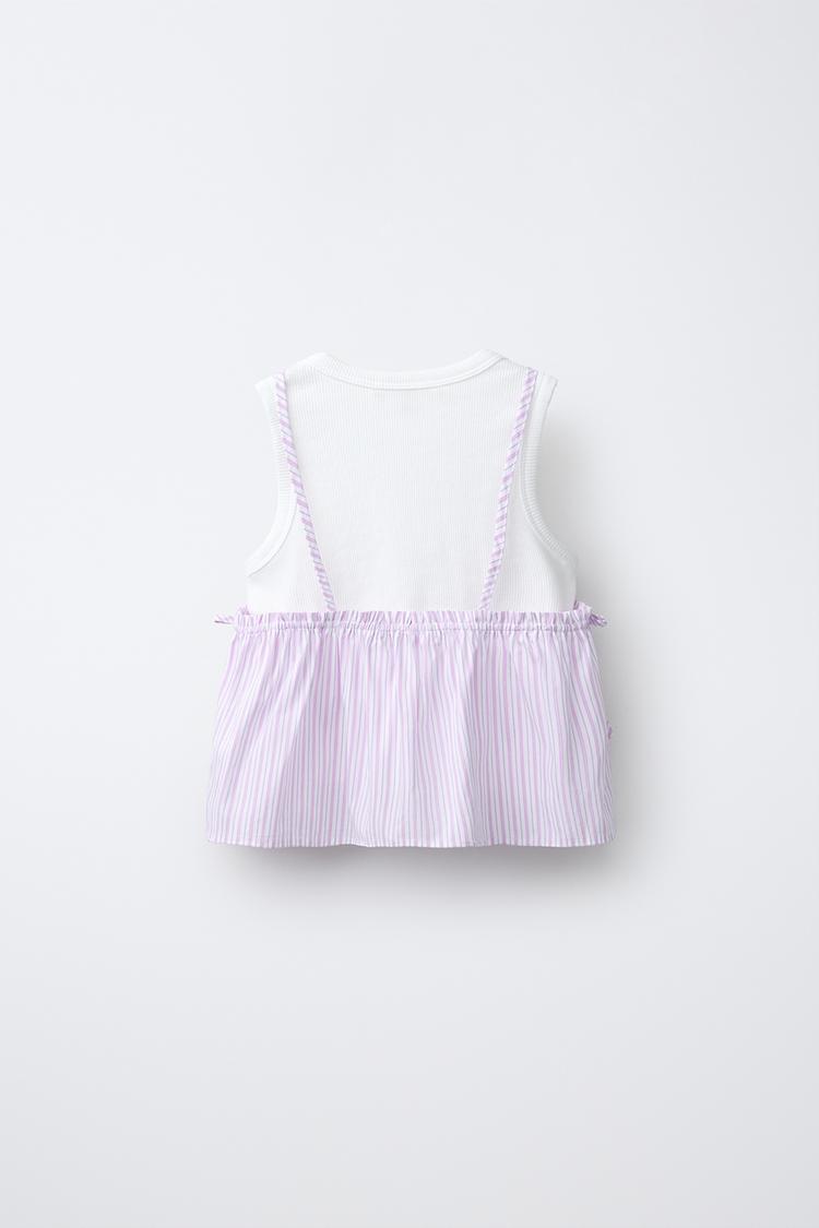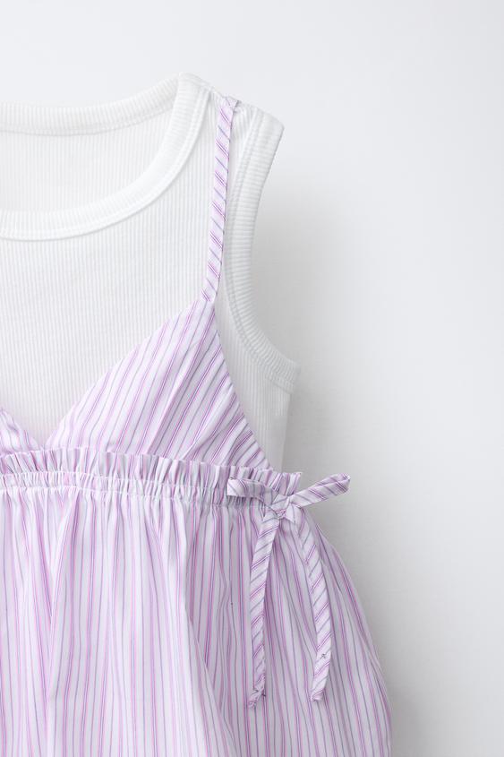 ZARA ТОП В ПОЛОСКУ С ФУТБОЛКОЙ В РУБЧИК, РОЗОВЫЙ