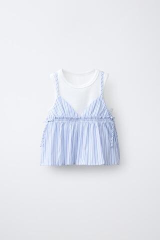 ZARA ТОП В ПОЛОСКУ С ФУТБОЛКОЙ В РУБЧИК, СИНИЙ