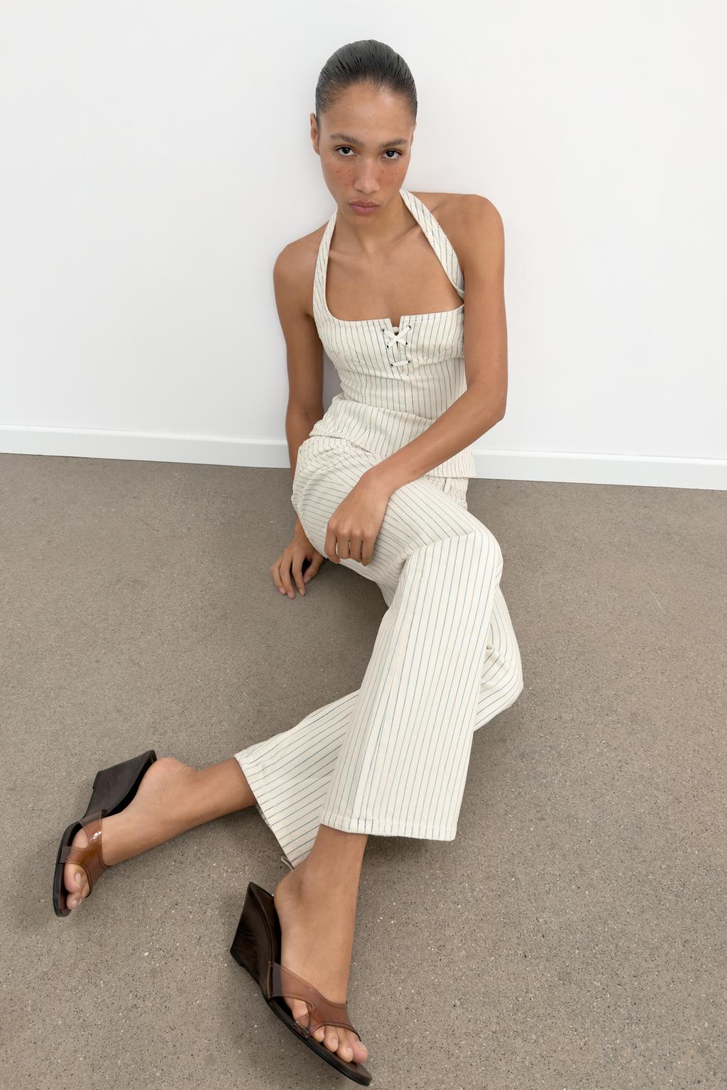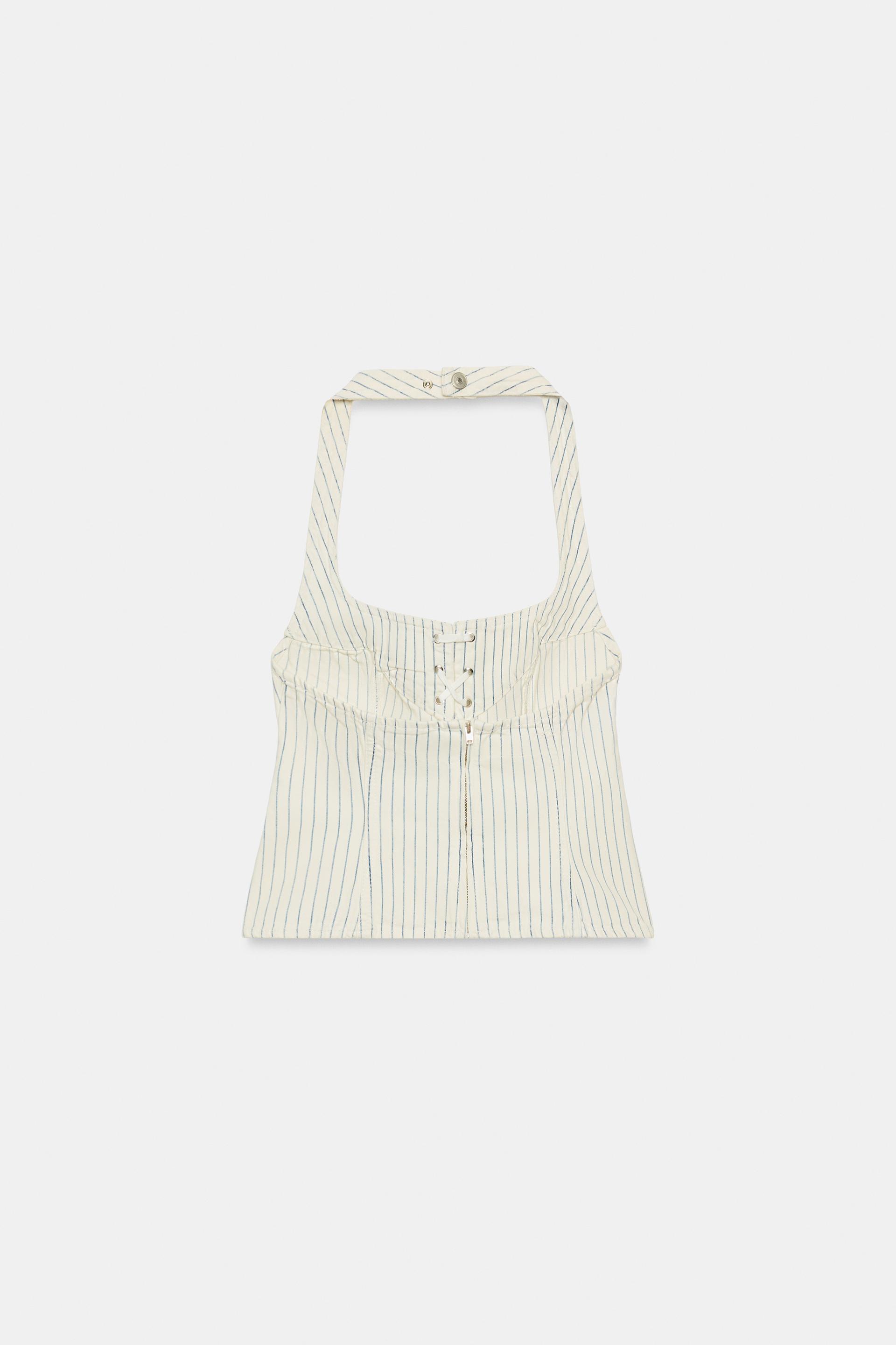 ZARA ТОП В ПОЛОСКУ С ГОРЛОВИНОЙ ХАЛТЕР, ПОЛОСКИ