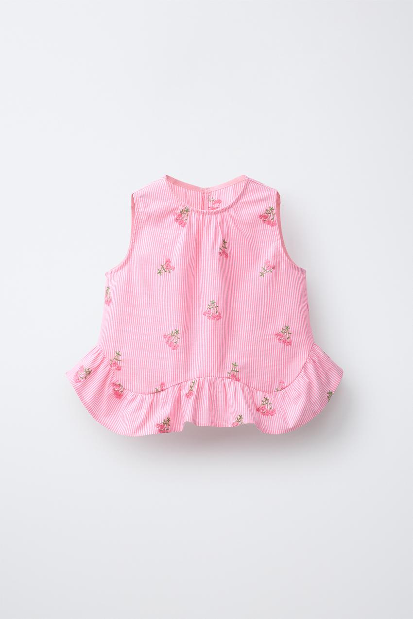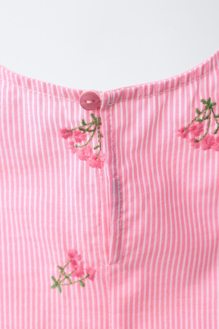 ZARA ТОП В ПОЛОСКУ С ЦВЕТОЧНОЙ ВЫШИВКОЙ, РОЗОВЫЙ