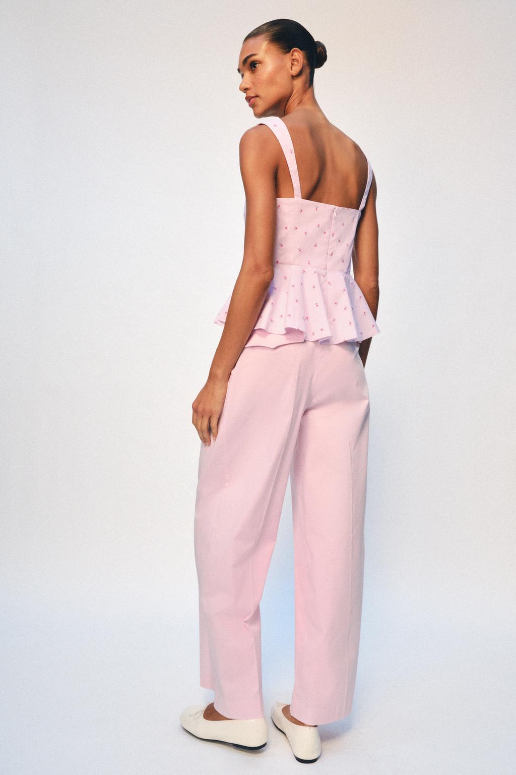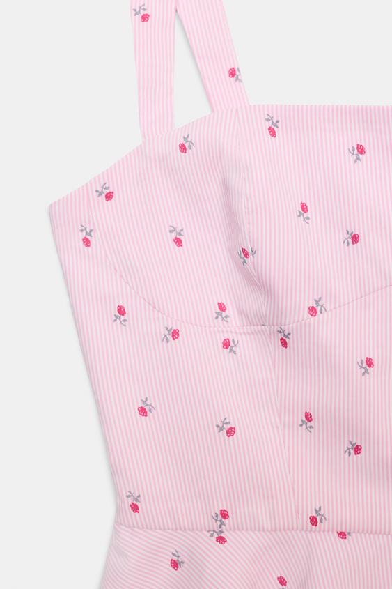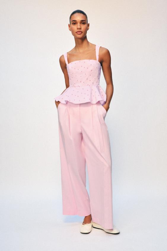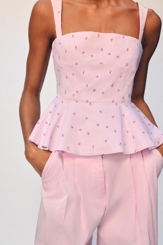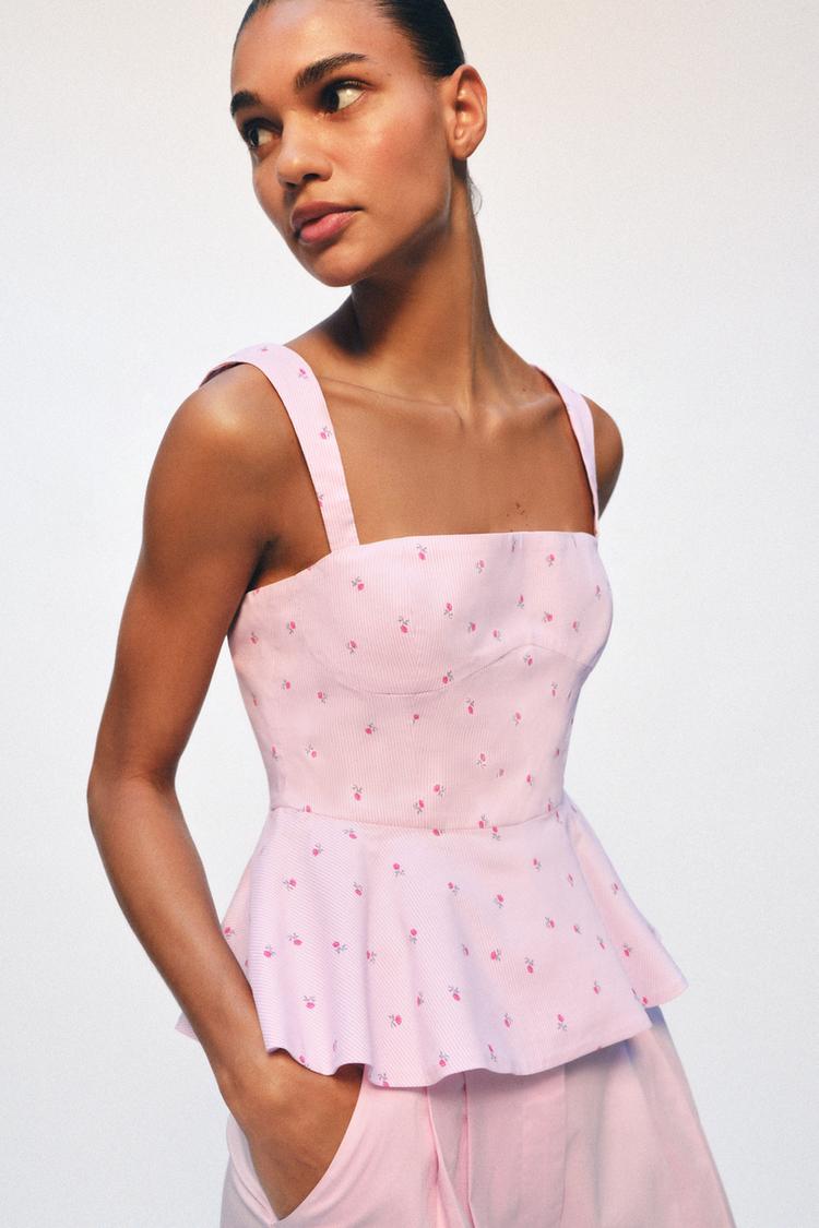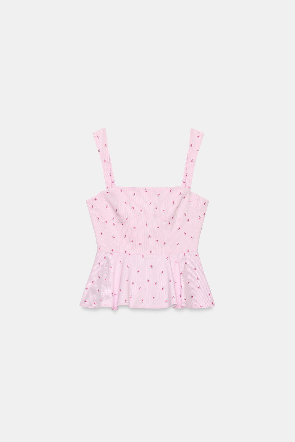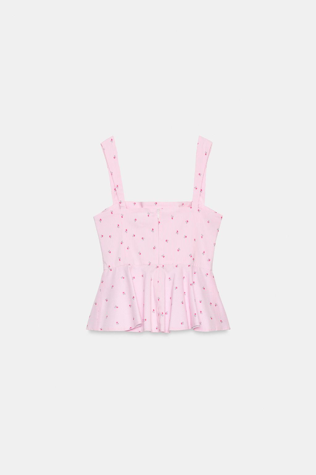 ZARA ТОП В ПОЛОСКУ С ЦВЕТОЧНЫМ ПРИНТОМ, РОЗОВЫЙ