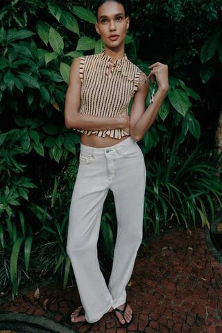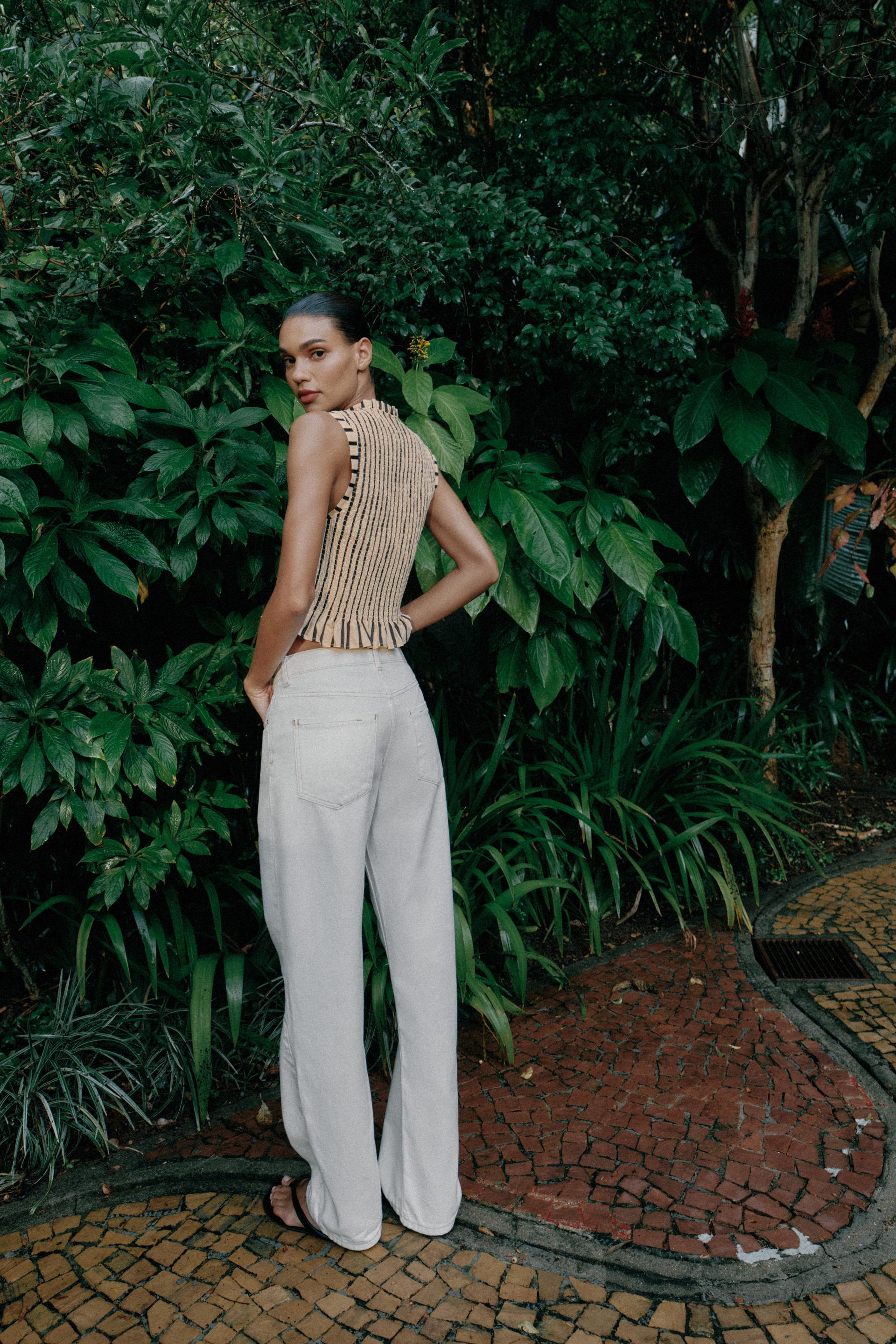 ZARA ТОП В ПОЛОСКУ С ЖАТКОЙ, ЭКРЮ/ЧЕРНЫЙ