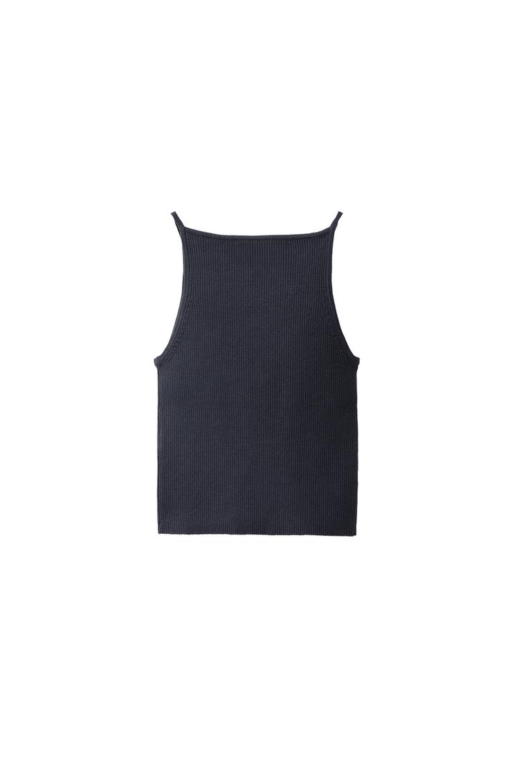 Топ в рубчик с прямым вырезом и бретельками.