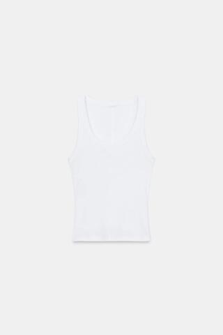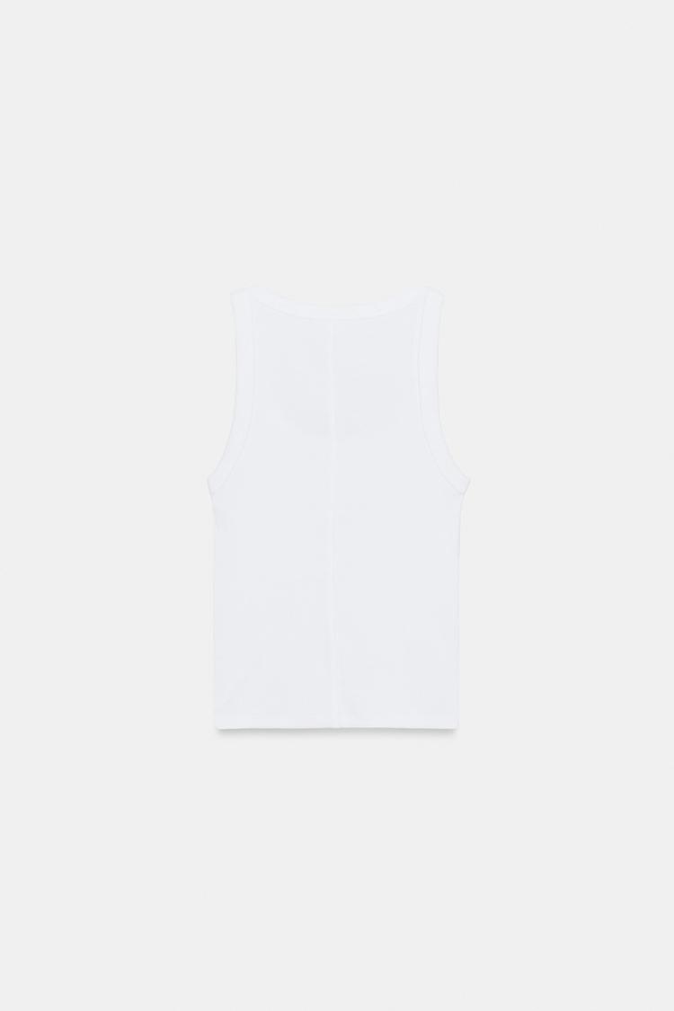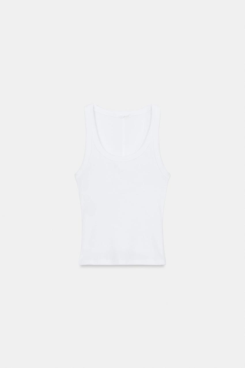 ZARA ТОП В РУБЧИК БЕЗ РУКАВОВ, БЕЛЫЙ
