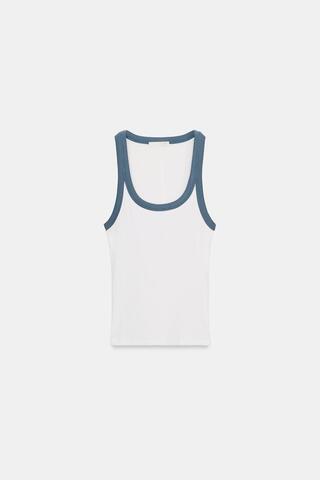 ZARA ТОП В РУБЧИК БЕЗ РУКАВОВ, СИНИЙ/БЕЛЫЙ