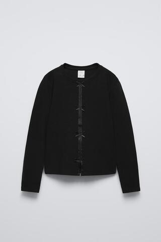 ZARA ТОП В РУБЧИК С БАНТАМИ ИЗ АТЛАСА, ЧЕРНЫЙ