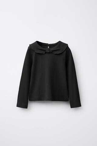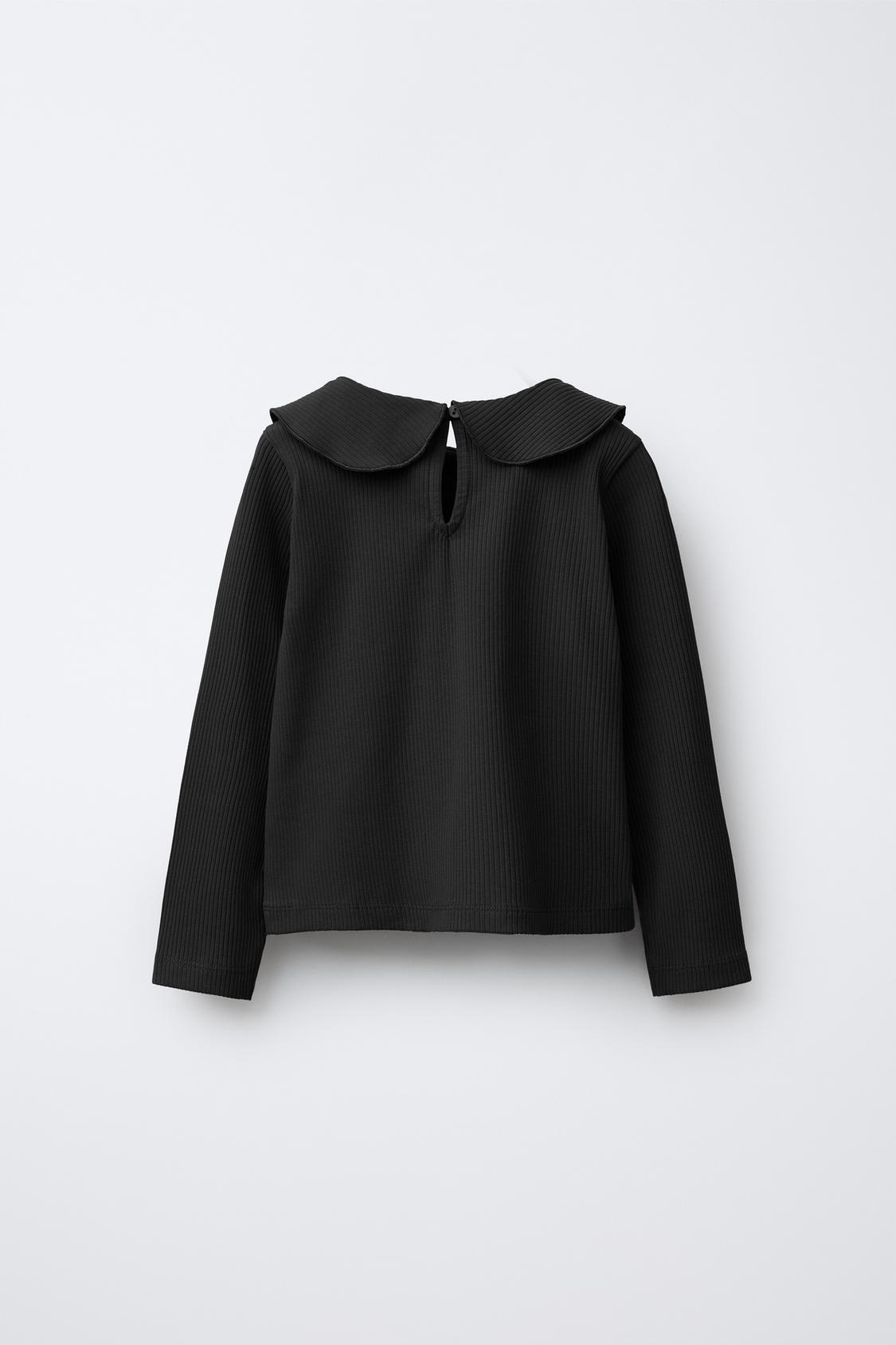 ZARA ТОП В РУБЧИК С КРУГЛЫМ ВОРОТНИКОМ, ЧЕРНЫЙ