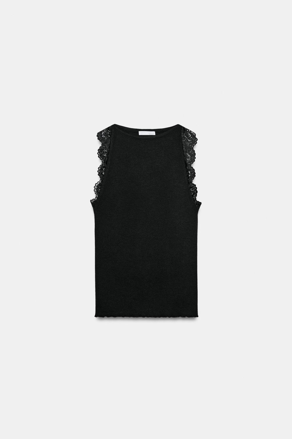 ZARA ТОП В РУБЧИК С КРУЖЕВОМ, ЧЕРНЫЙ