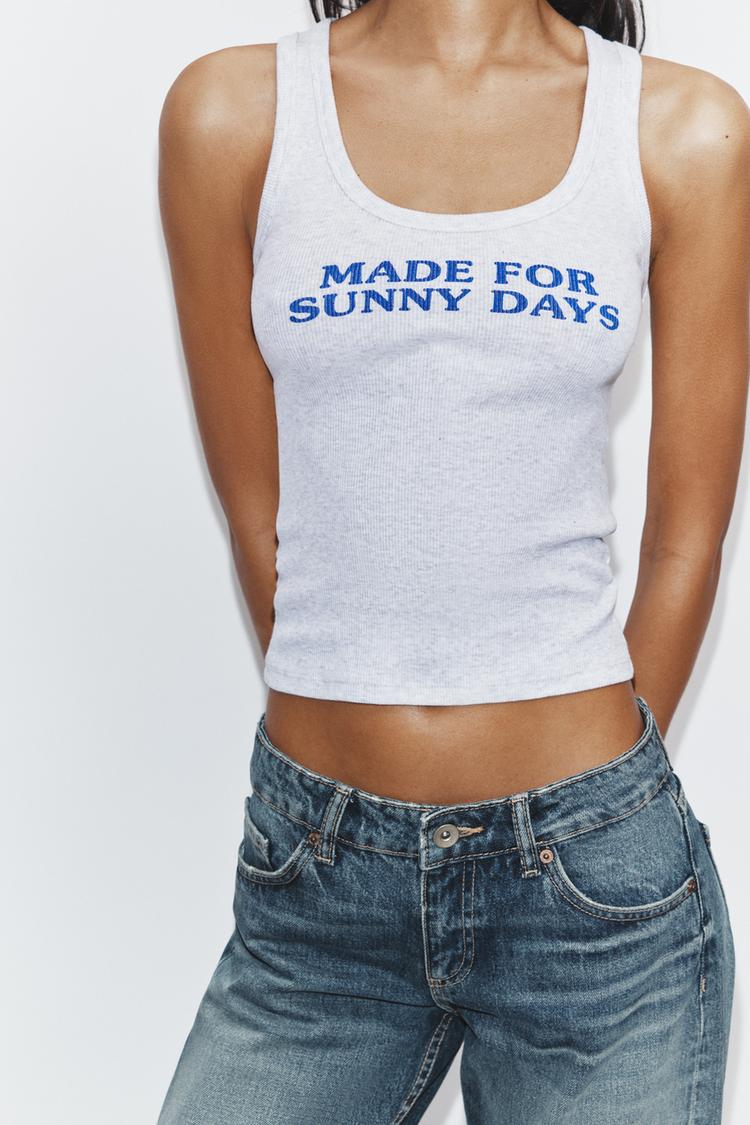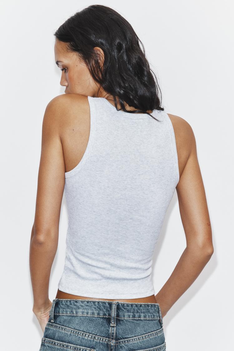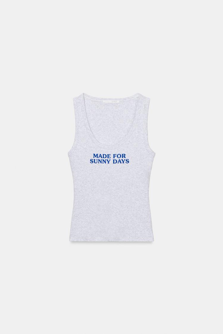 ZARA ТОП В РУБЧИК С НАДПИСЬЮ, СЕРЫЙ МЕЛАНЖ