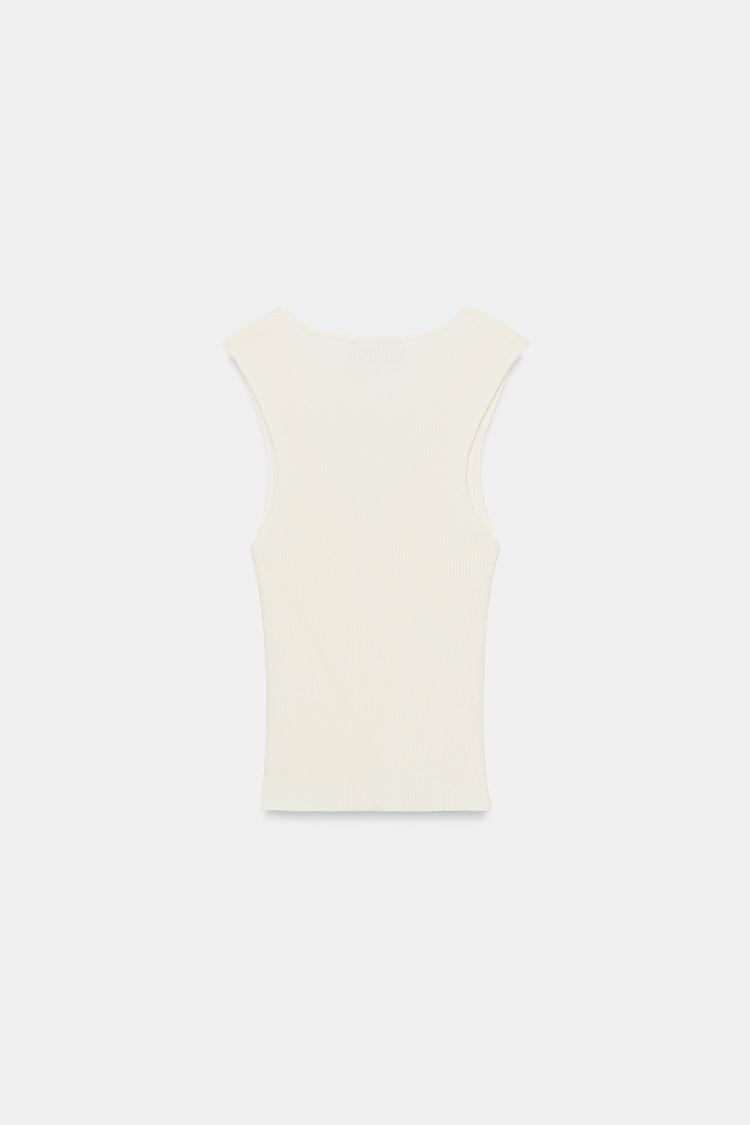 ZARA ТОП В РУБЧИК С V-ОБРАЗНЫМ ВЫРЕЗОМ, БЕЛЫЙ