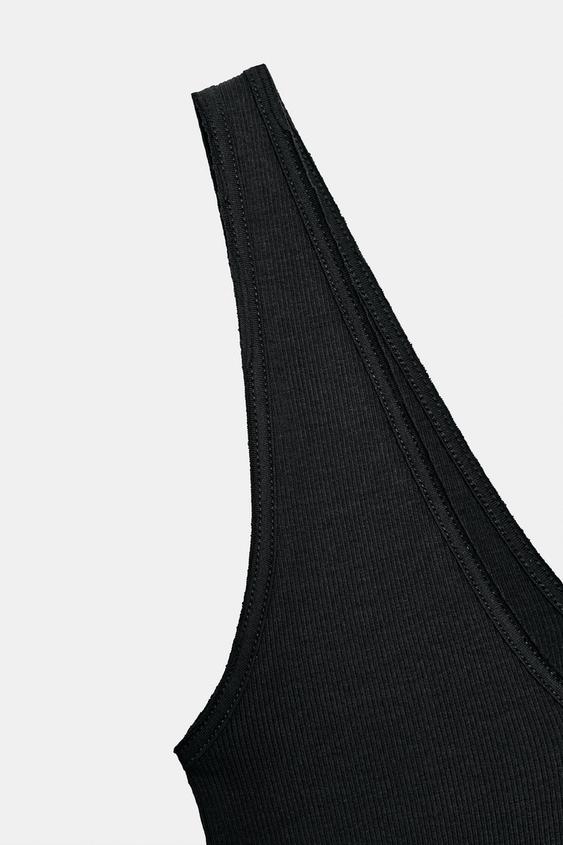 ZARA ТОП В РУБЧИК С V-ОБРАЗНЫМ ВЫРЕЗОМ, ЧЕРНЫЙ