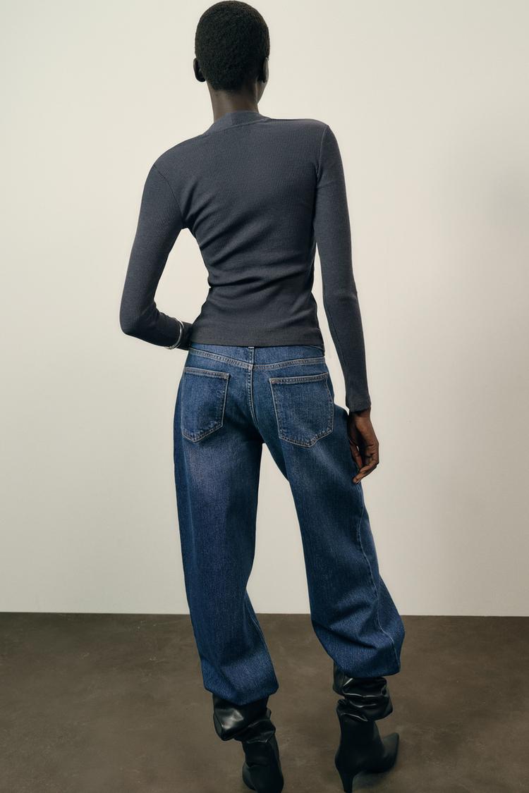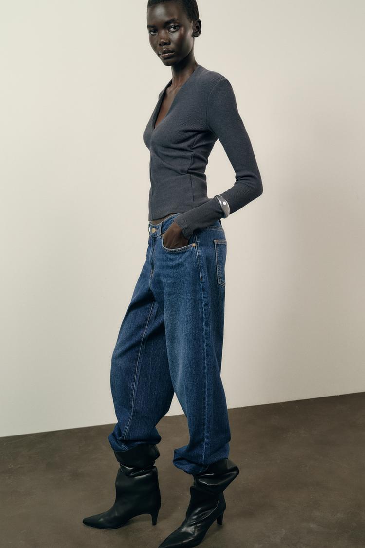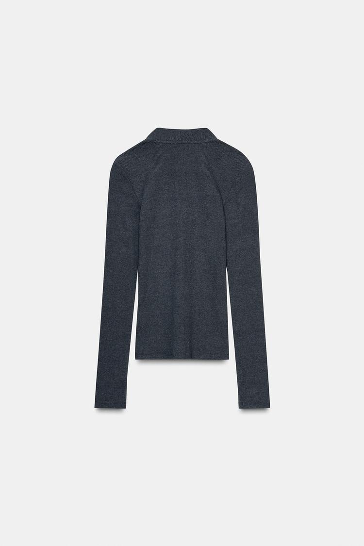 ZARA ТОП В РУБЧИК С V-ОБРАЗНЫМ ВЫРЕЗОМ, УГОЛЬНЫЙ
