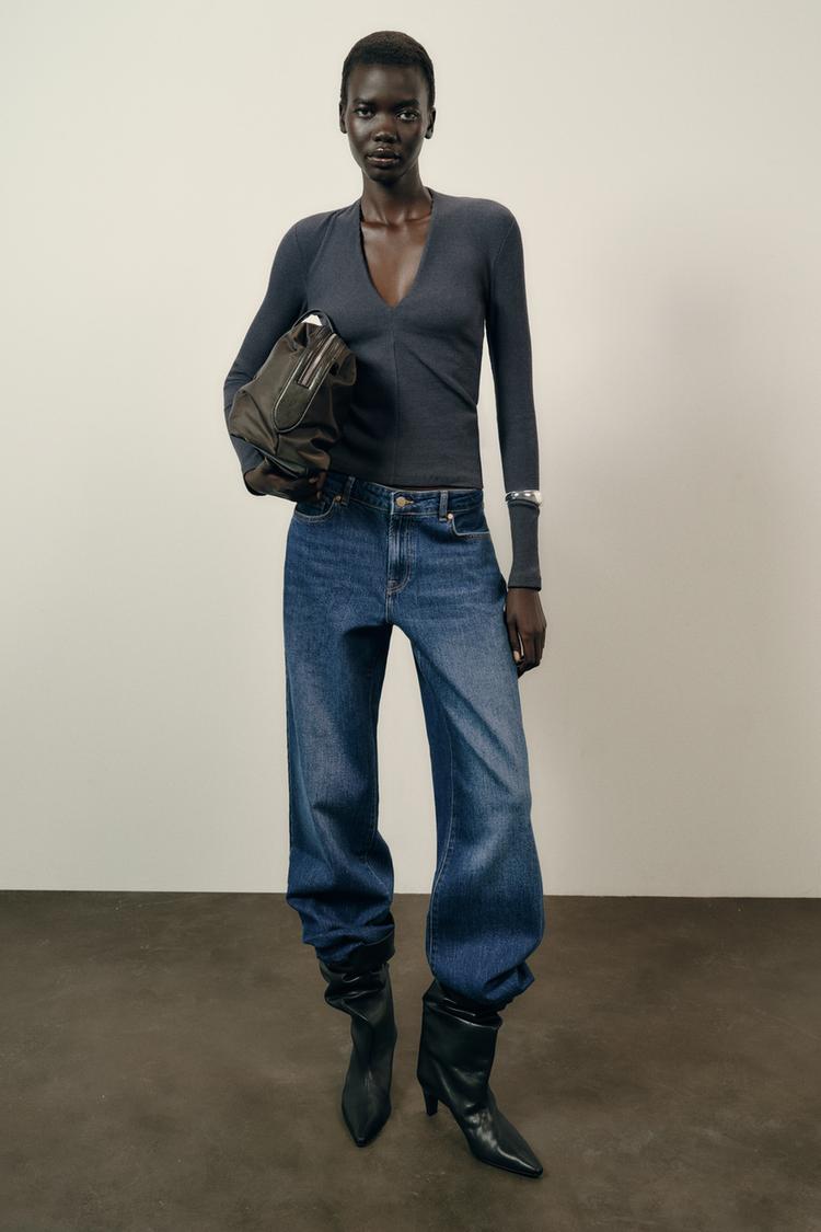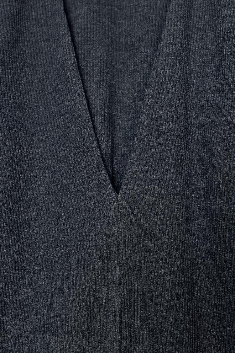 Топ с V-образным вырезом и длинными рукавами. Ткань в рубчик. Прямой низ.