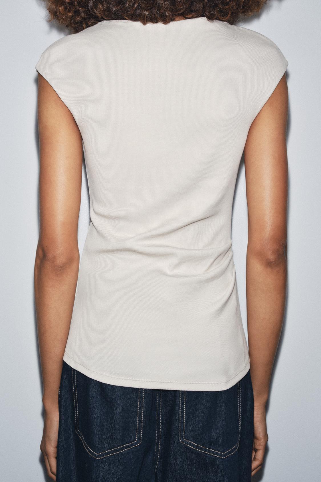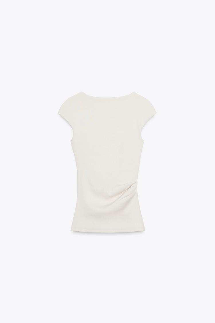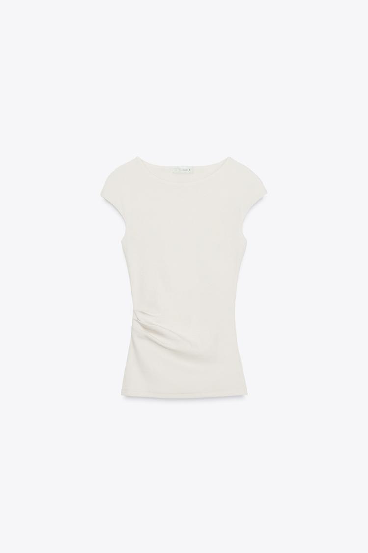 ZARA ТОП В РУБЧИК СО СБОРКАМИ, ЭКРЮ