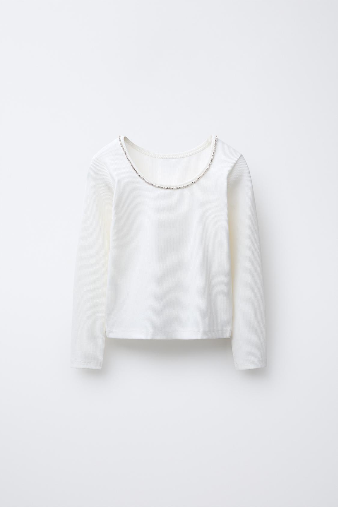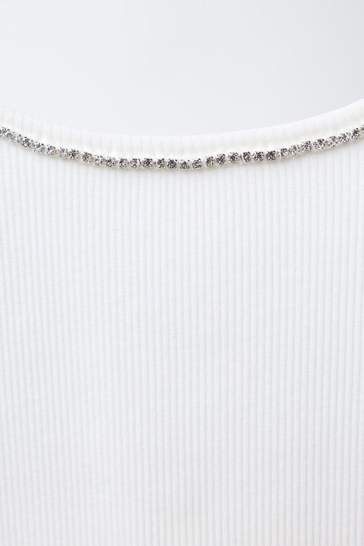 ZARA ТОП В РУБЧИК СО СТРАЗАМИ, БЕЛЫЙ
