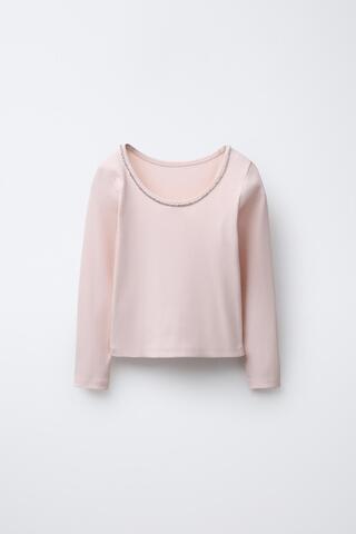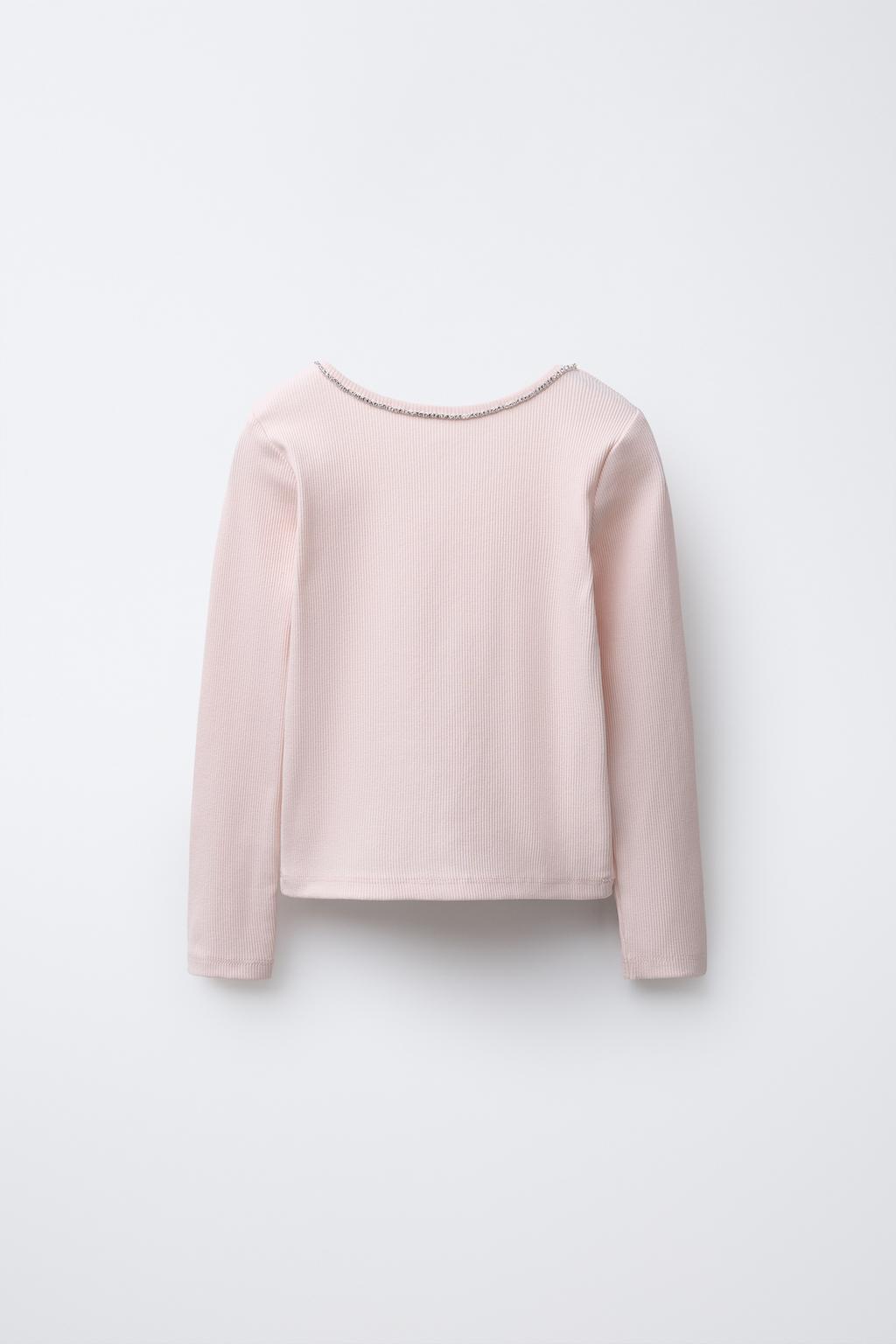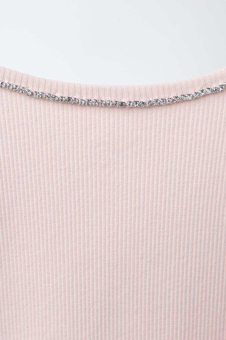 ZARA ТОП В РУБЧИК СО СТРАЗАМИ, РОЗОВЫЙ