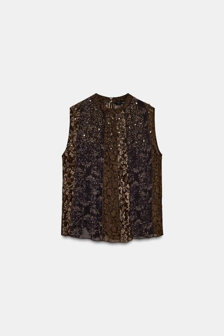 ZARA ТОП В СТИЛЕ ПЭЧВОРК — ZW COLLECTION, РАЗНОЦВЕТНЫЙ