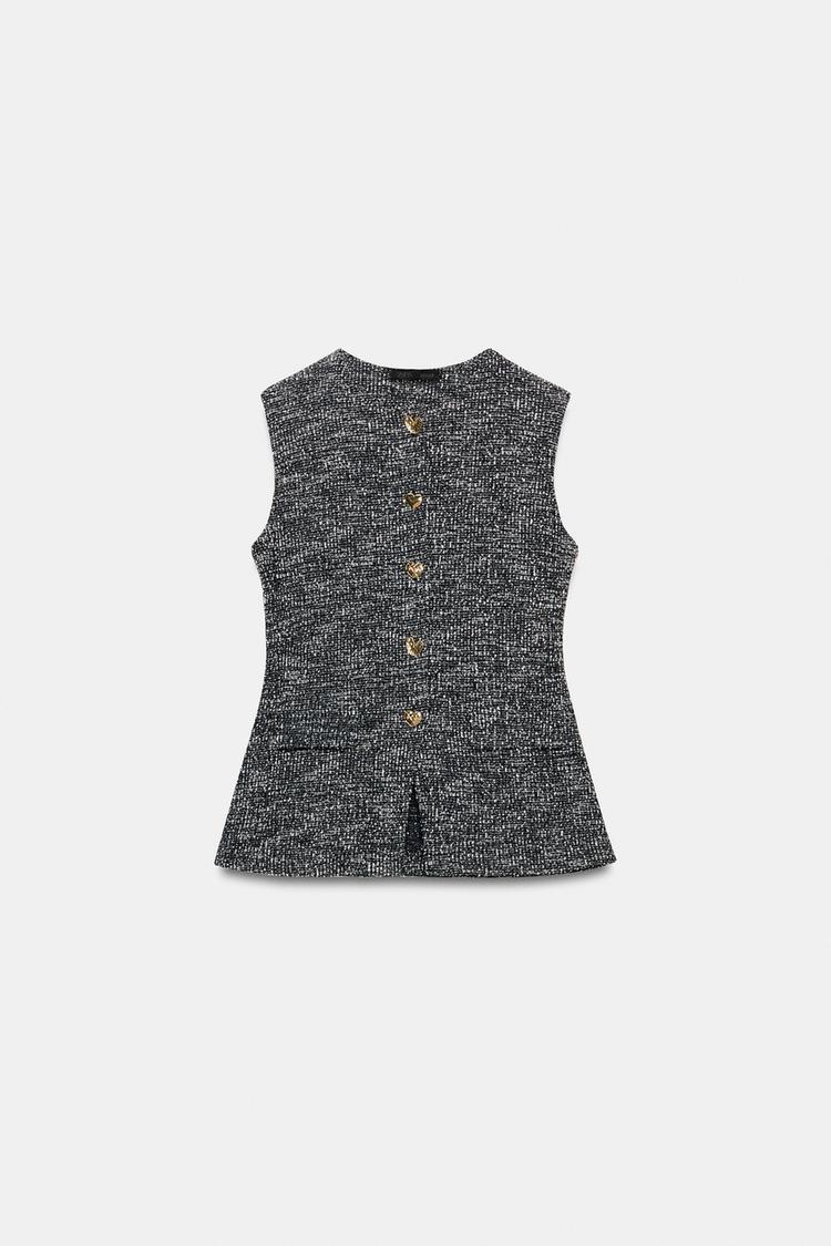 ZARA ТОП-ЖИЛЕТ ИЗ РЕЛЬЕФНОЙ ТКАНИ С ПУГОВИЦАМИ, ЧЕРНЫЙ/БЕЛЫЙ
