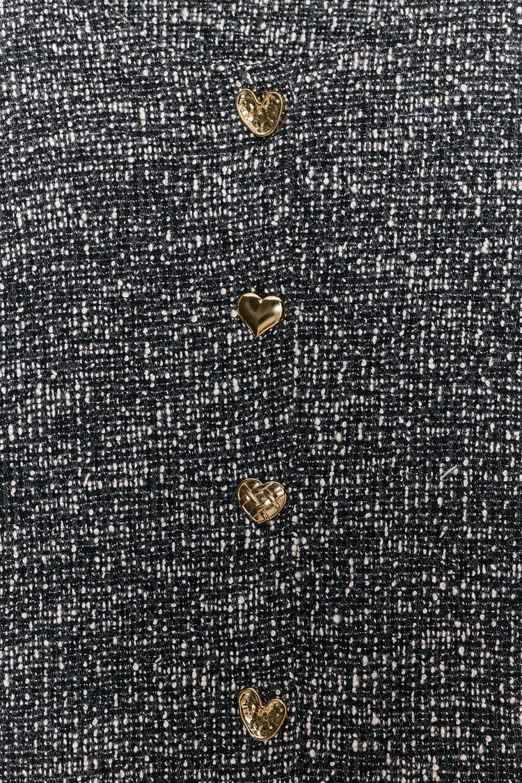 Топ-жилет с круглым вырезом и проймами. Металлические пуговицы в форме сердца спереди. Рельефная ткань. Низ с разрезом.