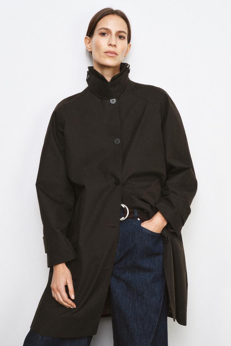 ZARA ТРЕНЧ ОВЕРСАЙЗ ИЗ КОЛЛЕКЦИИ ZW, ТЕМНО-КОРИЧНЕВЫЙ
