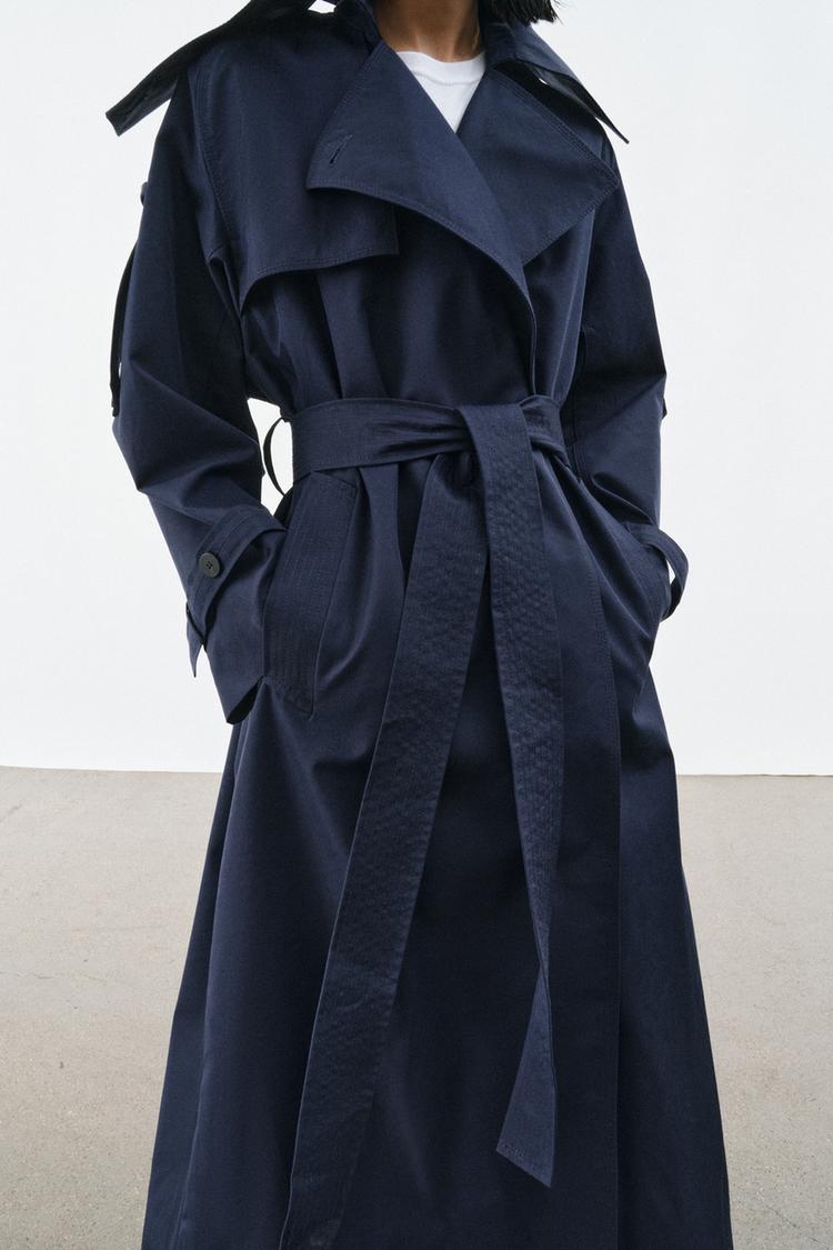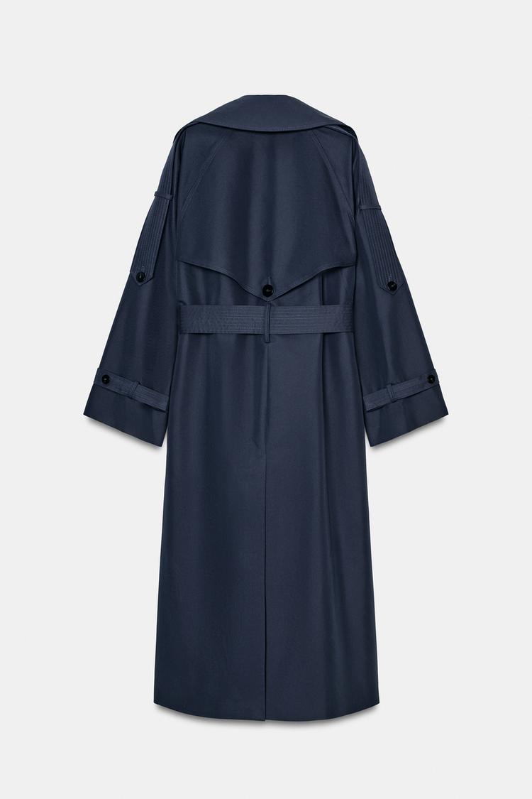 ZARA ТРЕНЧ ОВЕРСАЙЗ С ПОЯСОМ — ZW COLLECTION, СИНИЙ