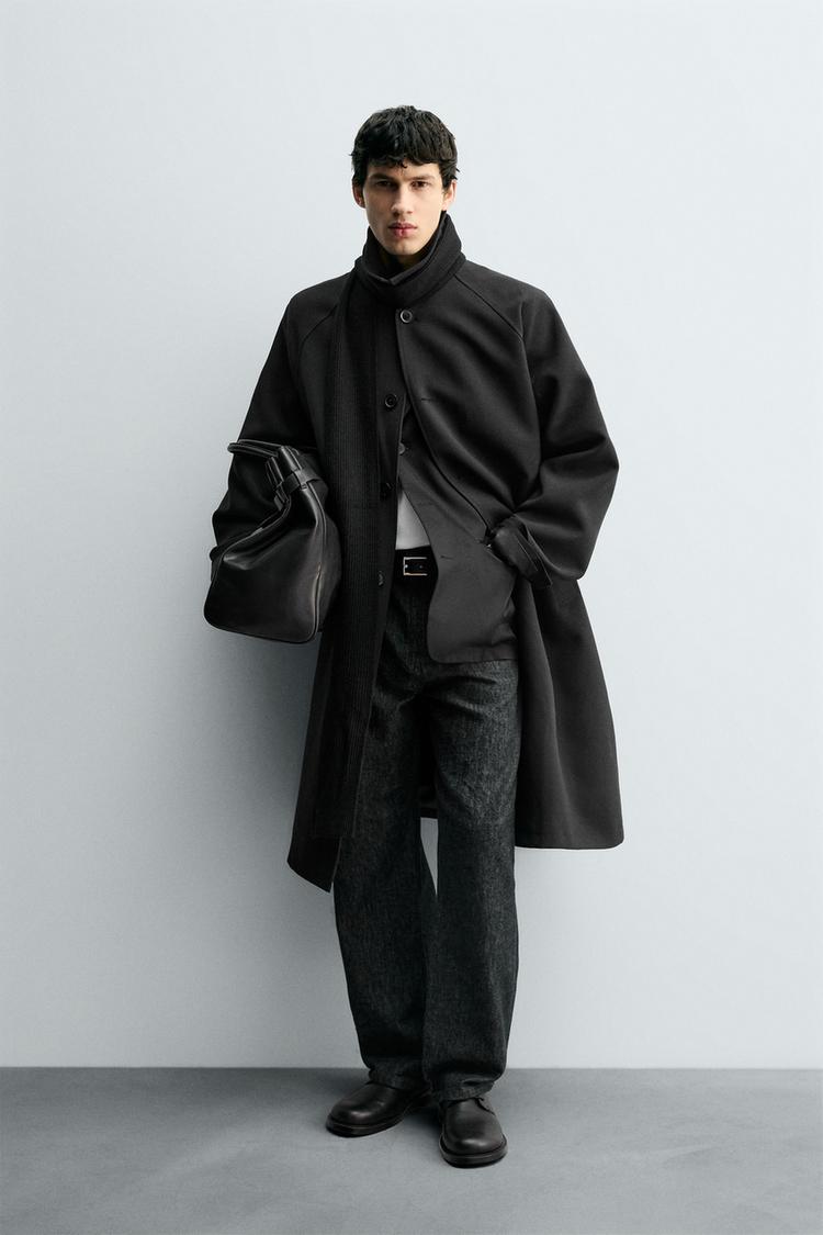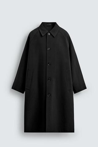 ZARA ТРЕНЧ ОВЕРСАЙЗ С ШЕРСТЬЮ, ЧЕРНЫЙ