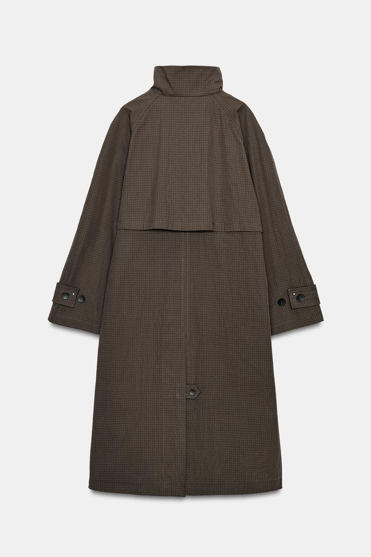 ZARA ТРЕНЧ ОВЕРСАЙЗ В КЛЕТКУ — ZW COLLECTION, ШОКОЛАДНЫЙ
