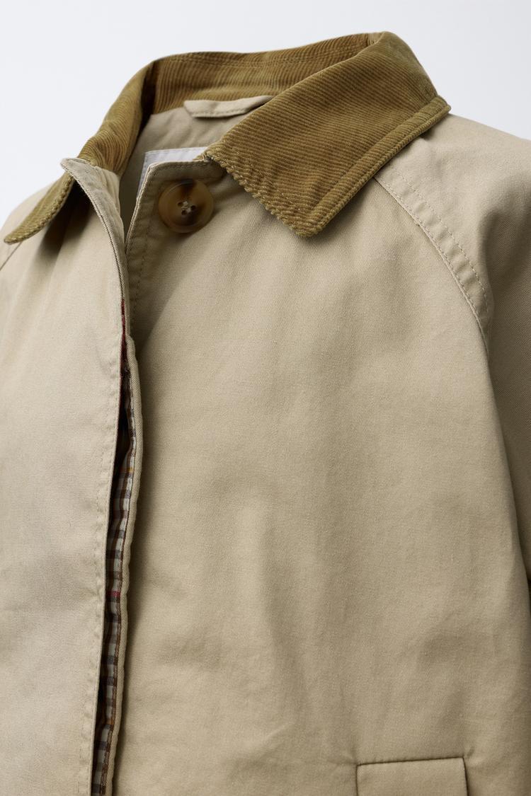 ZARA ТРЕНЧ С ВЕЛЬВЕТОВЫМ ВОРОТНИКОМ, БЕЖЕВЫЙ