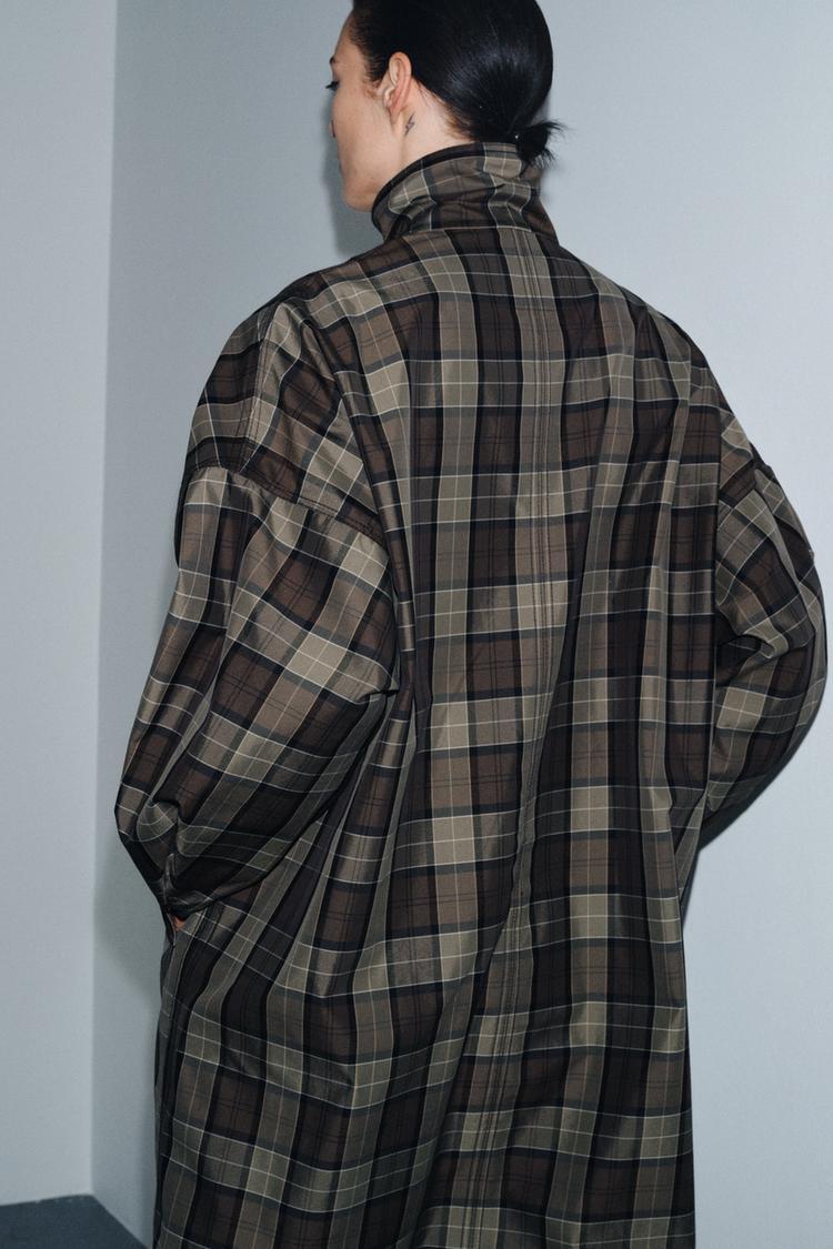 ZARA ТРЕНЧКОТ В КЛЕТКУ — ZW COLLECTION LIMITED EDITION, ТЕМНО-КОРИЧНЕВЫЙ