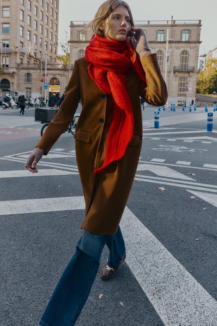 ZARA ТРЕУГОЛЬНАЯ ШАЛЬ С АЖУРНЫМ УЗОРОМ, КРАСНЫЙ