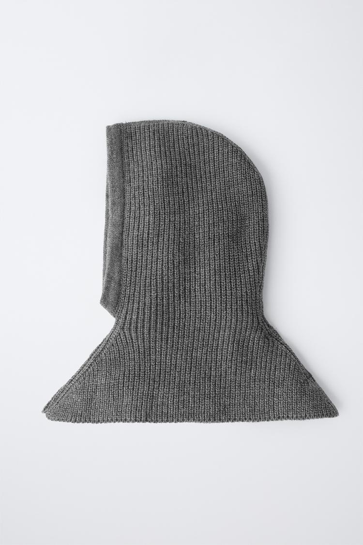 ZARA ТРИКОТАЖНАЯ БАЛАКЛАВА, СЕРЫЙ