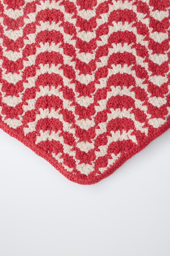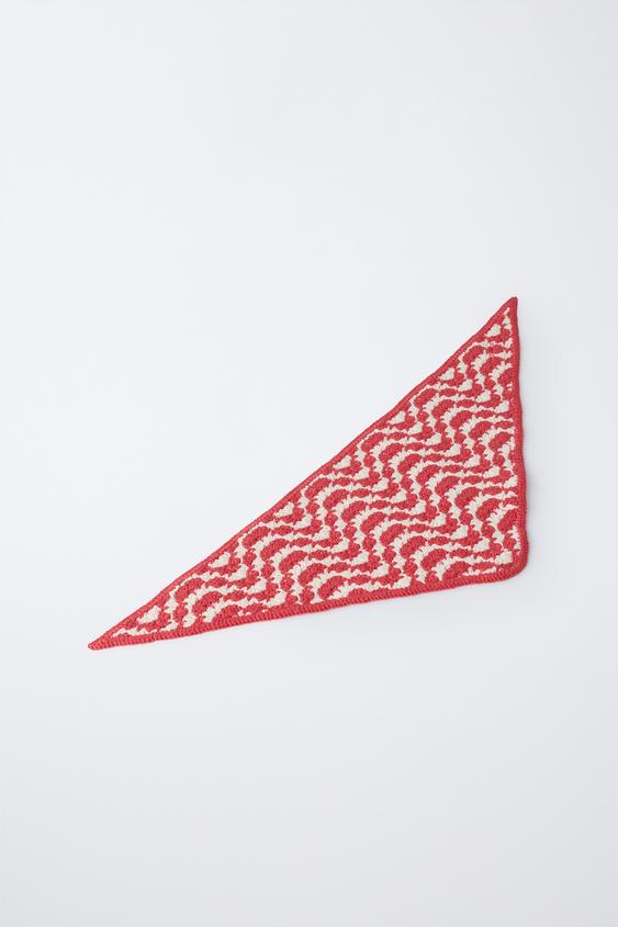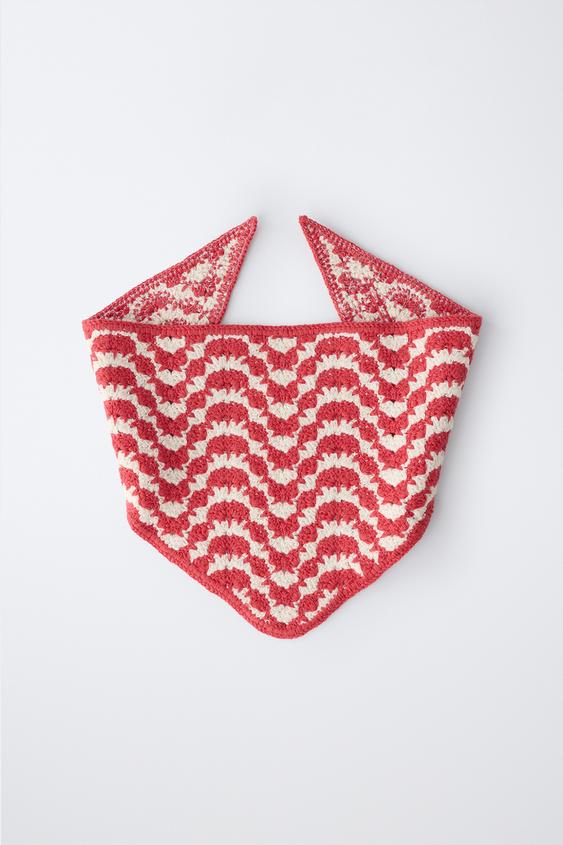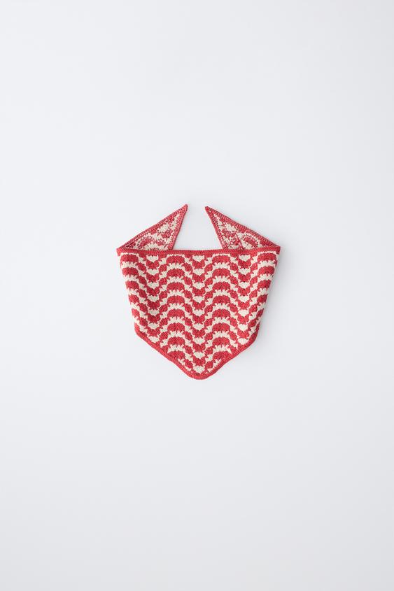 ZARA ТРИКОТАЖНАЯ БАНДАНА С РЕЛЬЕФНЫМ УЗОРОМ, ЭКРЮ/КРАСНЫЙ