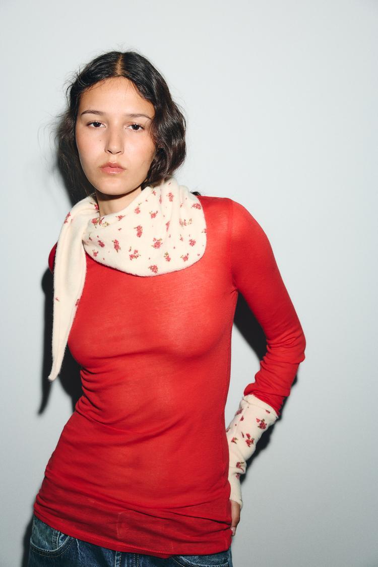 ZARA ТРИКОТАЖНАЯ БАНДАНА С ЦВЕТОЧНЫМ ПРИНТОМ, ЭКРЮ