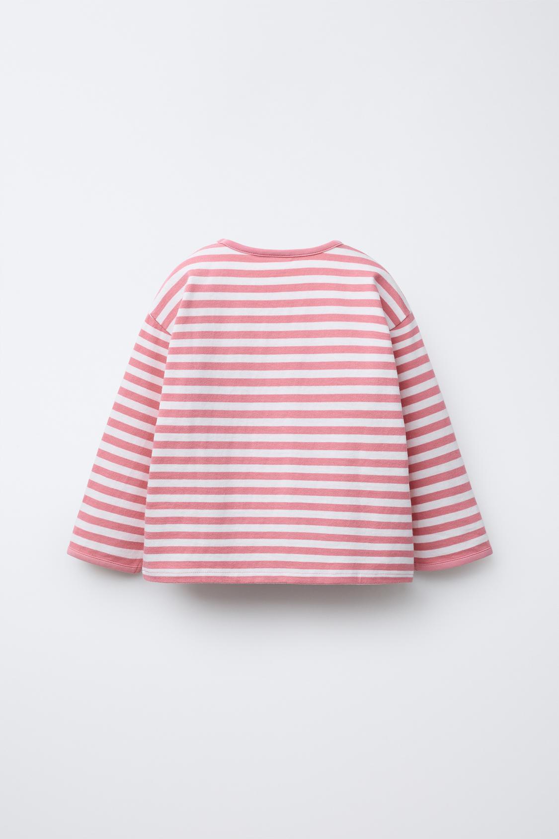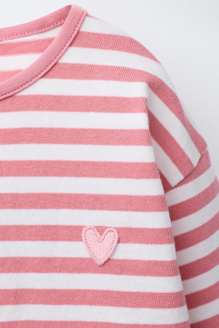 ZARA ТРИКОТАЖНАЯ ФУТБОЛКА В ПОЛОСКУ С НАШИВКОЙ «СЕРДЦЕ», СВЕТЛО-РОЗОВЫЙ